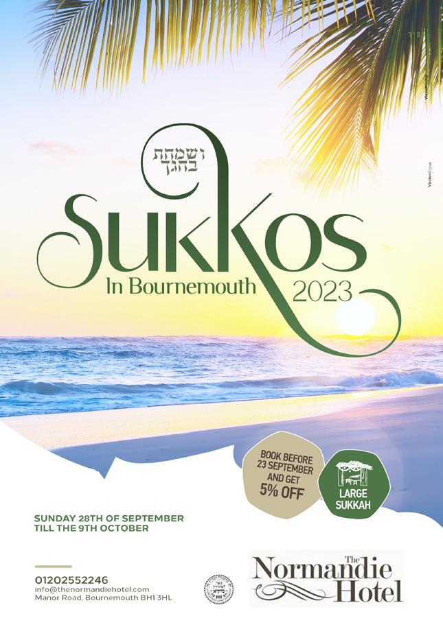 SUCCOT CAMP 2nd-6th October 2023 WHEN WHEN WHO WHO Boys & girls | ages 3-7 TIME TIME 10am to 3pm optional early drop off at 9am PRICE PRICE £155 for the week £33 per day £5 per day for early drop off at 9am REGISTRATION REGISTRATION w h a t s a p p + 4 4 2 0 8 0 6 6 5 1 5 3 o r e m a i l a t a r a s c h a p i r a @ g m a i l c o m LOCATION Hasmonean Primary School 2-4 Shirehall Lane NW4 2PE 12 SEASONAL CIrcular • 24th SEPTEMBER 2023