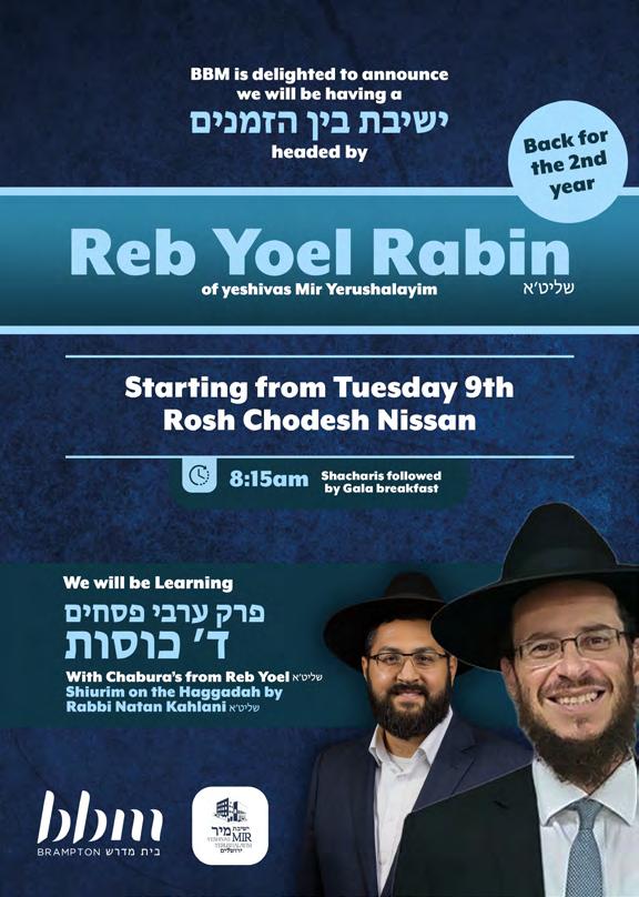 APRIL 25 • ןסינ ז " י חספ מ״הוחד ׳א םוי STARTING הכוס תכסמ Acquire a Masechta. Make it Yours. םכל םתחקלו START NOW, COMPLETE THE MASECHTA BY SUKKOS. Join or set up a shiur or chaburah in your neighborhood! Contact Oraysa for more information. P 0333-366-1508 E UK@ORAYSA.ORG W WWW .ORAYSA.ORG ORAYSA SHIURIM NOW AVAILABLE ON ALL DAF PLATFORM