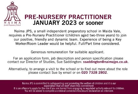 Rabbonim, kallah teachers & medical professionals 55 EMPOWERED IMPACT in numbers in UK during the past 12 months On the Tahareinu hotline 775 CALLS RECEIVED thedesigndrive.com to English speaking couples living in Israel More than 180 BABIES BORN SCAN HERE TO DONATE TO TAHAREINU UK ALL DONATIONS WILL RECEIVE A TAX DEDUCTIBLE RECEIPT 8-9 JANUARY charityextra.com/tahareinu CAMPAIGN CULMINATES ON FOR DONATIONS/ENQUIRIES: 020 3670 0610