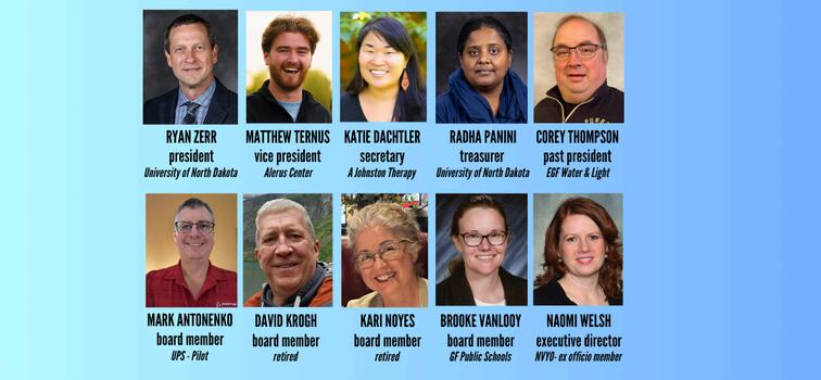 Present NVYO Board 2025-26 (at left). President Ryan Zerr, Vice President Matthew Ternus,, Treasurer Radha Panini, Secretary Katie Dachtler, Executive Director Naomi Welsh, Mark Antonenko,, Dave Krogh, Kari Noyes, Brooke VanLooy,