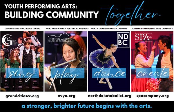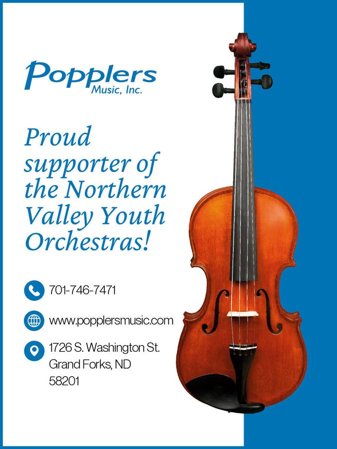 MANY THANKS TO: Empire Arts Center & staff • Grand Forks Central HS & staff • Grand Forks Red RIver Band Department, Mark Diischer • GFPS • East Grand Forks High School & staff • Behls Photography, Cecilia Lysne • MJD Photography, Monica Danielson • Deek’s Pizza • Elizabeth Ames • Annie Crawley • Sara Larson • Andres Moreno • Matthew Ternus • Corey Thompson • Stella Sung • Tyler York • these wonderful students & their school & private instructors • and the many other supporters, sponsors, donors, and grantors listed in this program.