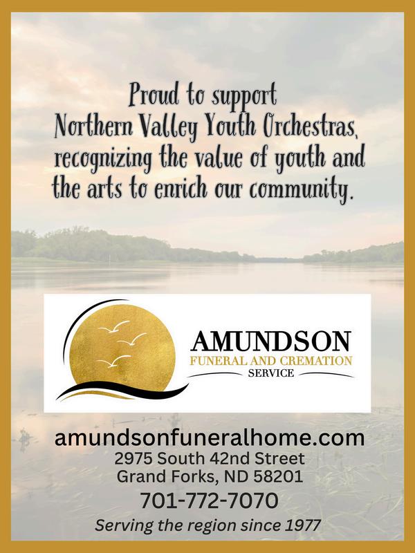 Northern Valley Youth Orchestras is celebrating 15 seasons of inspiring musicians and engaging communities. NVYO offers two orchestras, a fall chamber music program (Crescendo), and a summer day camp (Dal Segno). NVYO provides young musicians aged 11 to 21 symphonic and chamber music experience, community connections, and opportunities to stretch and challenge themselves in a supportive setting Participants throughout the year number over 120 and come from numerous MN & ND cities and towns within a 75-mile range of Grand Forks NVYO Alumni pursue degrees in a variety of professional fields including music and the sciences, and consistently earn places at excellent colleges and universities both locally and around the country Scholarships are available for all NVYO programs.