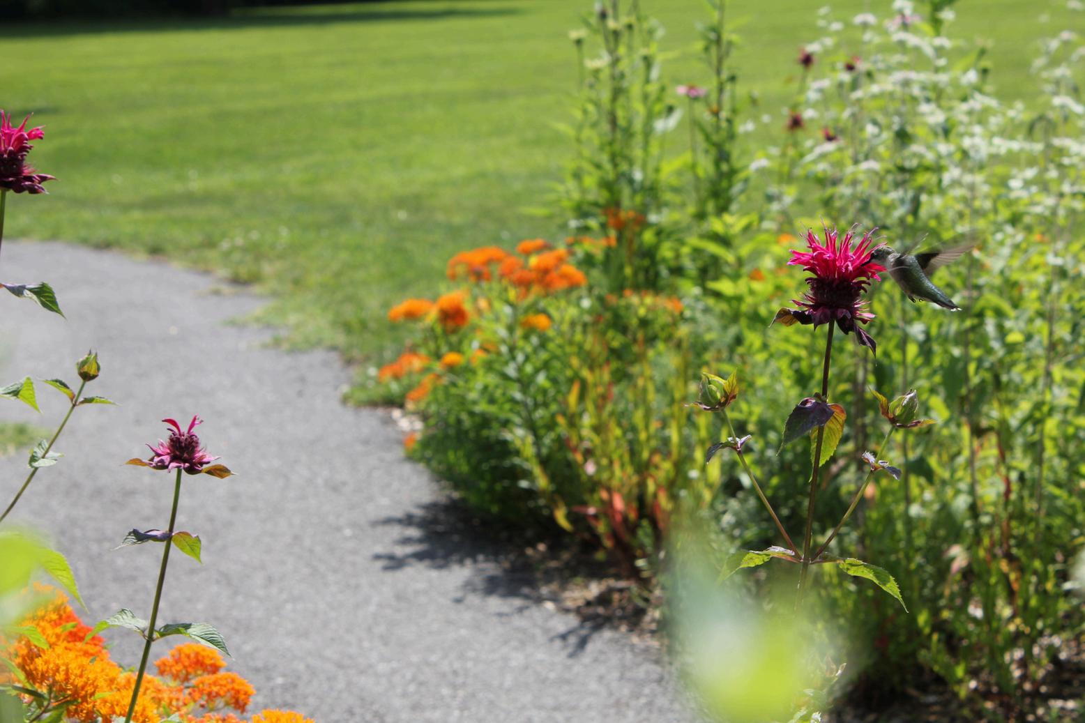 Lead the students to the on-campus garden. Explain its design, the types of native plants it features, and its role in preventing pollution and erosion. Discuss the importance of biodiversity and how the garden provides habitat for wildlife. Point out pollinators present!
