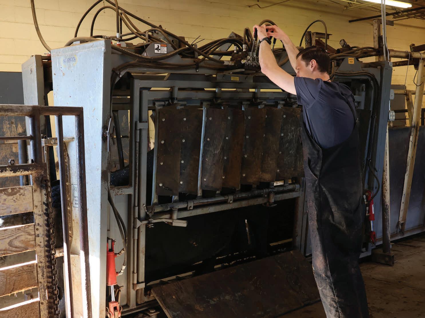 Dr. Hoffman at Ridgeview Veterinary Clinic working the cattle chute.
