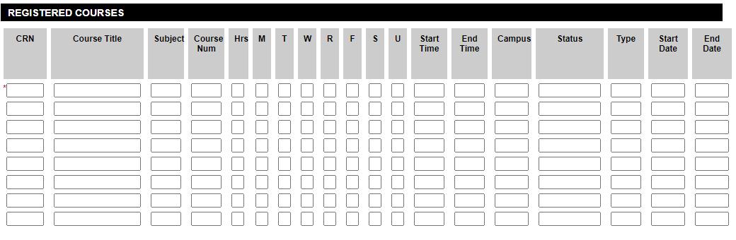The student’s current schedule will populate in the REGISTERED COURSES section of the form.