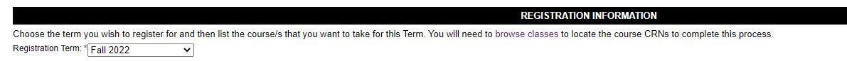 Choose CORRECT TERM. Class information will not populate if term and CRNs don’t match. The student can click BROWSE CLASSES to use the Class Search.