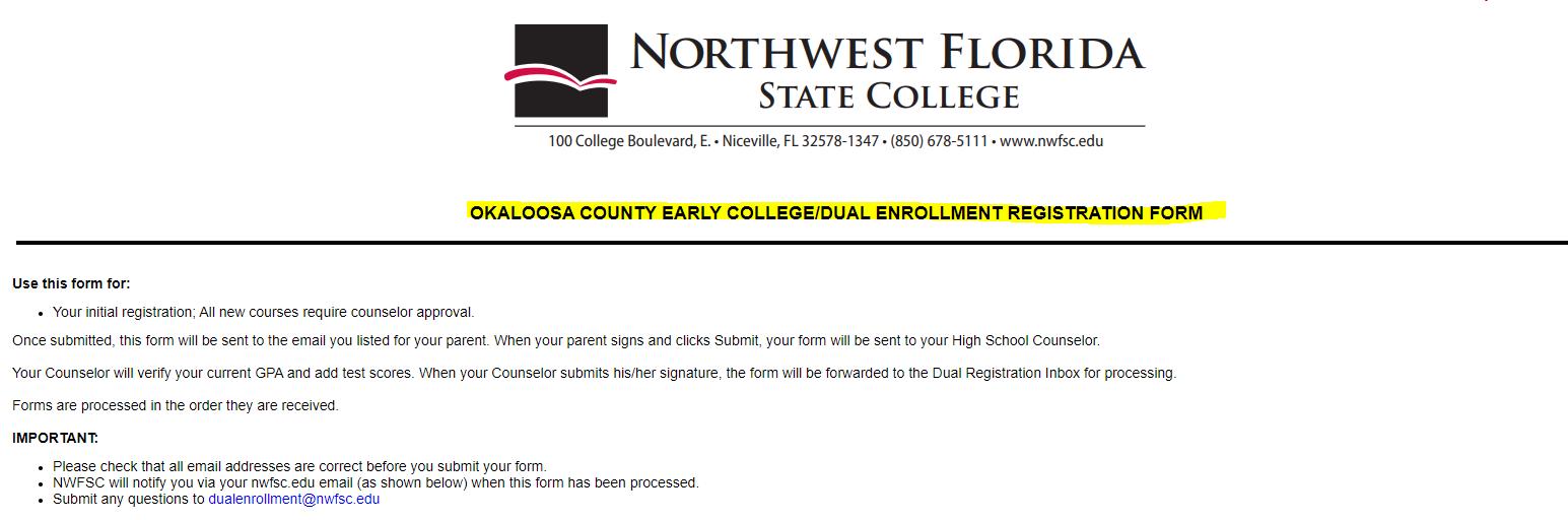 a. If not received in 3-5 days of submitting your Admissions Application email dualenrollment@nwfsc.edu and request your info be sent