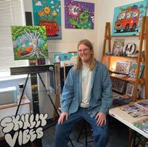 There’s always a lot of color or nature in the scenes he creates, along with his signature Skully Vibes character.