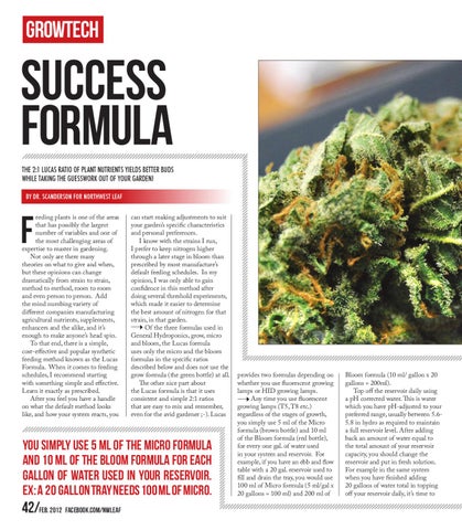 success formula THE 2:1 LUCAS RATIO OF PLANT NUTRIENTS YIELDS BETTER BUDS WHILE TAKING THE GUESSWORK OUT OF YOUR GARDEN! BY DR. SCANDERSON FOR NORTHWEST LEAF