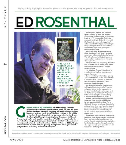 URU OF GANJA ED ROSENTHAL has been making Cannabis cultivation secrets known to the general public for over 40 years. He has also been a staunch supporter of legalization throughout his career and saw the fruits of his labor realized in the middle of the last decade. Rosenthal was born and raised in the Bronx, developing his lifelong interest in plants throughout childhood. A smart and crafty individual, he worked as a Wall Street stock broker in the ‘60s after college, but soon grew dissatisfied with that work. An interest in marijuana beckoned - and as Rosenthal told the SF Gate in 2007, “If you were interested in plants and you grew up during hippie times, you sort of just gravitated to learning more about marijuana.”