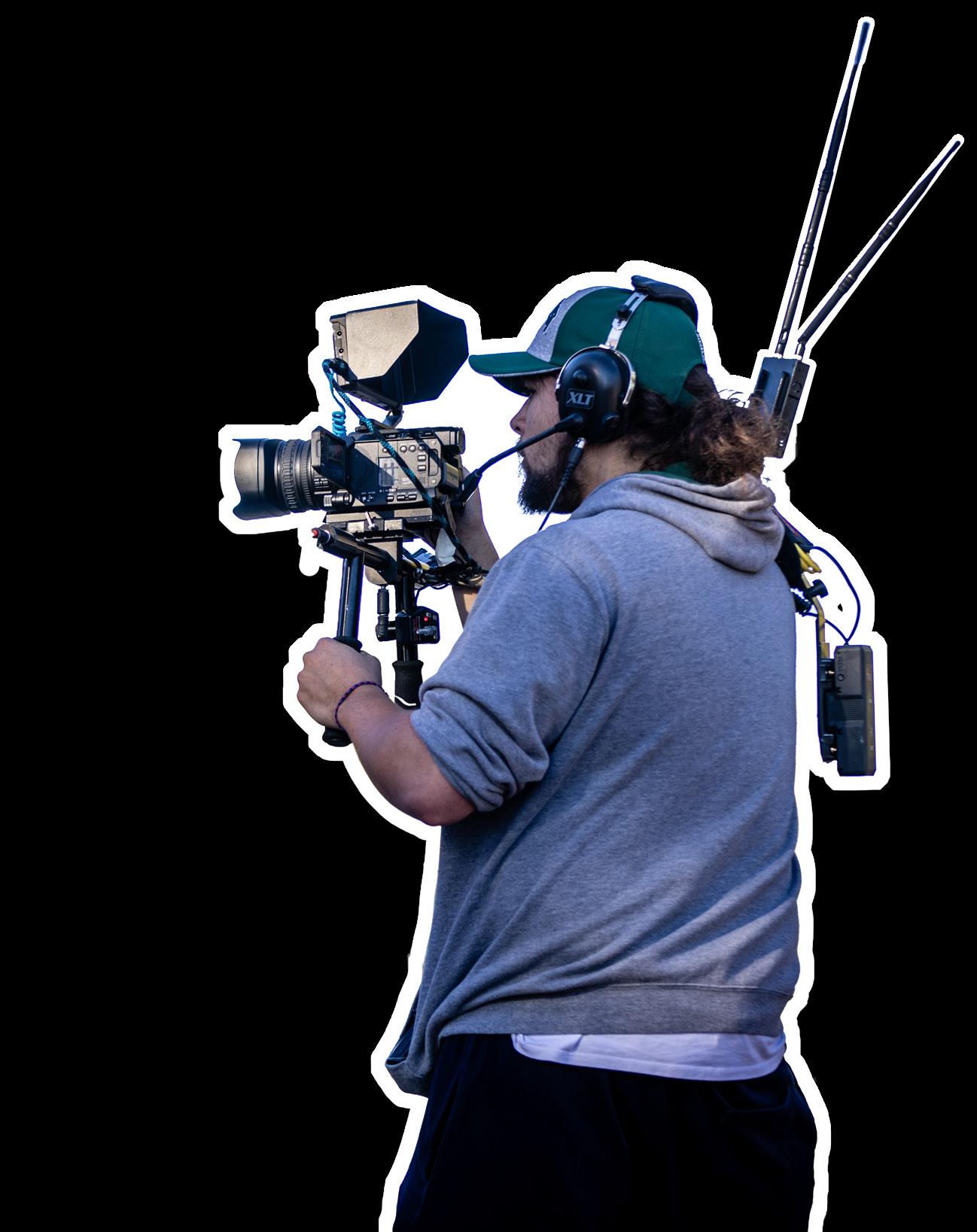 A student uses a camera to broadcast the homecoming parade live on KNWT, a student-run television station.