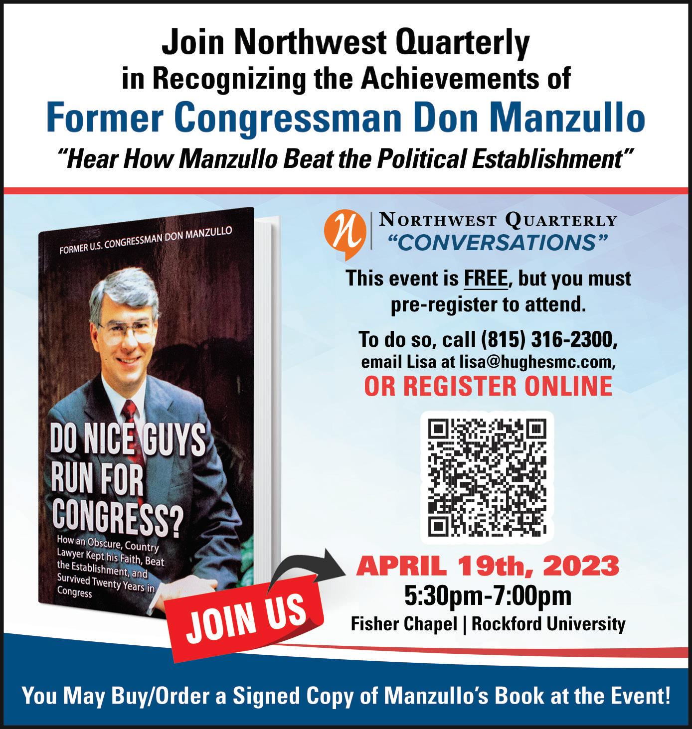 The event, entitled “Defending Manufacturing & Small Business: An Evening with Don Manzullo,” features a conversation between Manzullo and us, the editors of Northwest Quarterly and Smart Living. Manzullo will share how laws get made, how they unintentionally impact Main Street America, what it takes to fight back, and how an attitude of civility can heal many divides.