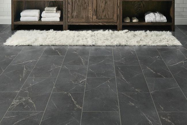 “Light, bright and interesting” is the goal of most people who want to renovate a bathroom, Biz continues. Ceramic and porcelain tiles in various shapes and patterns can be used throughout the entire bathroom. Light colors make a room look bigger and are most often accented with dark hardware for cabinets, faucets and shower heads, usually stainless steel with a black matte finish.