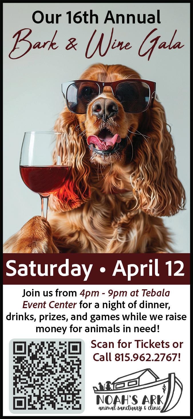 This year’s event takes place from 4 to 9 p.m. on Saturday, April 12 at Tebala Event Center, 7910 Newburg Road, Rockford, and includes an evening of dinner, wine tastings, music, a silent auction, raffles, prizes and games, all in the effort to raise money for animals in need. Some of the top prizes include a