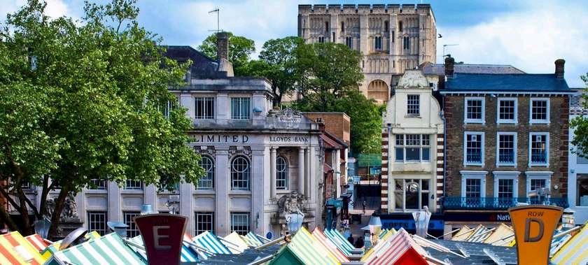 Norwich can boast the largest 6 day market in the UK which started in 1071 in sight of the castle.