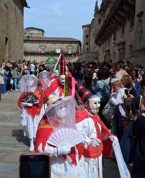 almost an hour later, we were inside. Towards the end of the service, the drums and pipes of the Galician traditional carnival parade outside penetrated the cathedral wall. For a while, the noise of the non-secular met the sounds of the secular head-on in a cacophony, then overtaken inside by the swinging incense burner and the swirling music through the huge organ pipes.
