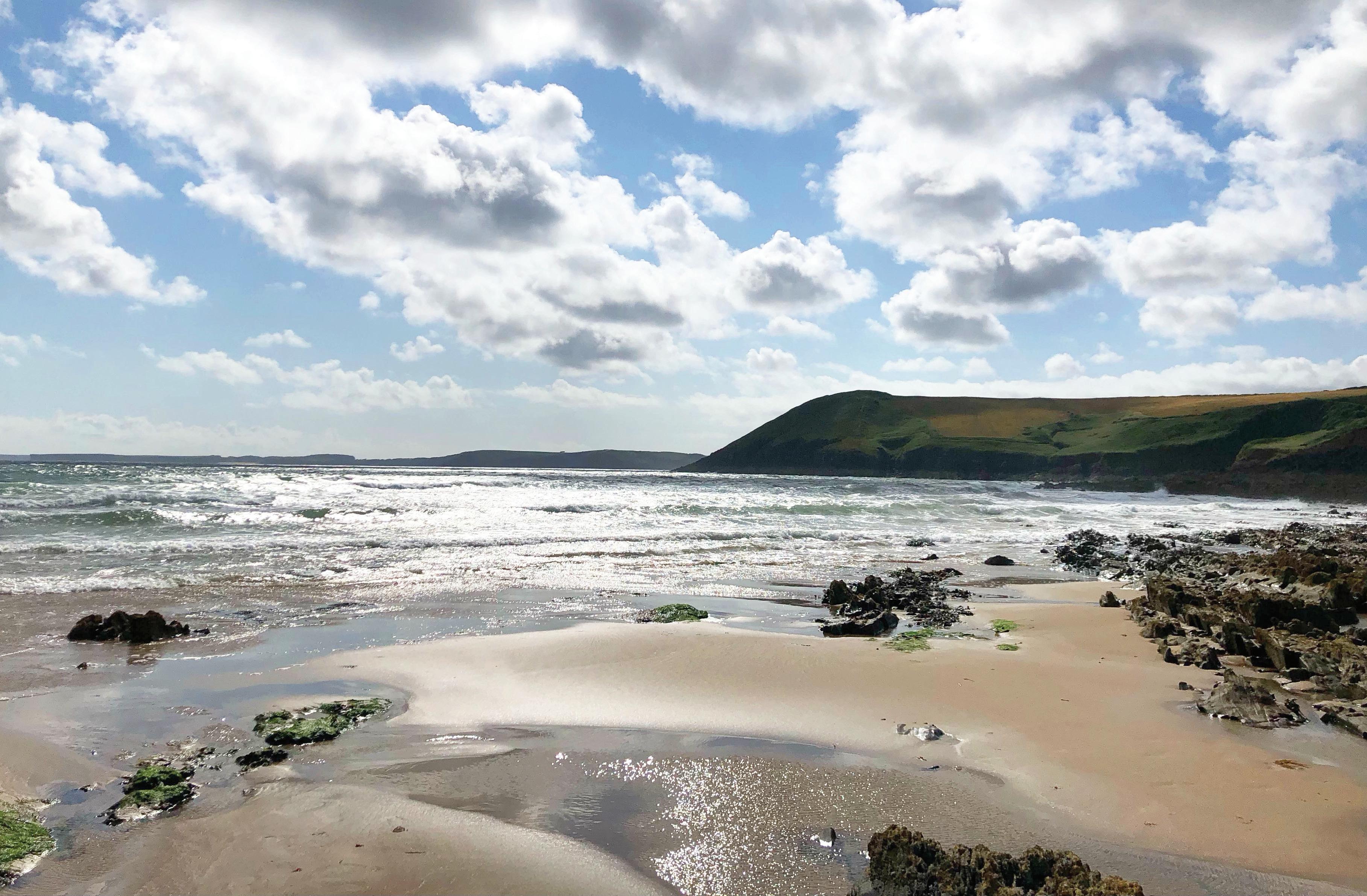 The next couple of days were a bit mizzly, but close by, we found a short, flat, headland walk with spectacular cliffs, and explored the 12th century church, then ventured further afield to Stackpole lily ponds and Picton Castle. The day before we left, though, the sun was shining once more, and off we headed for the beach.