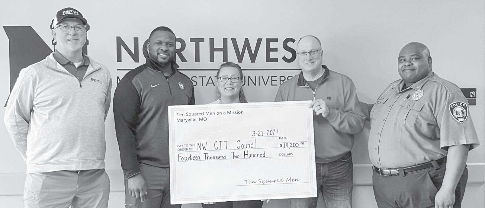 The donation made to the Northwest Missouri Crisis Intervention Team Council was from Ten Squared Men, an organization that provides funding and support to organizations across Missouri that impact the community positively. Ten Squared Men has 140 members and each member is required to pay a $100 fee each quarter of the year to help fund organizations.