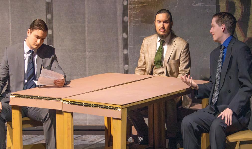 Freshman Corbin Estes, junior Lucas Tatar, and freshman Korbin Horton perform the roles of businessmen Edward Markley, Arthur Roeder, and C.B. “Charlie” Lee with Theatre Northwest in its upcoming production of “Radium Girls”.