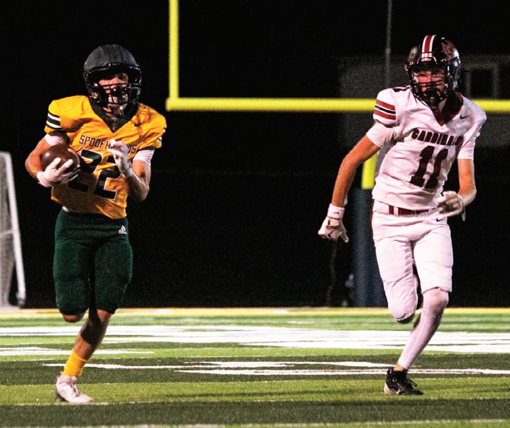Junior running back Brody Shepherd had a 53-yard run in the second quarter, resulting in another scoring drive. Senior running back Canon Creason rammed in the six-yard touchdown to finish the drive and give the Spoofhounds a 21-point lead.
