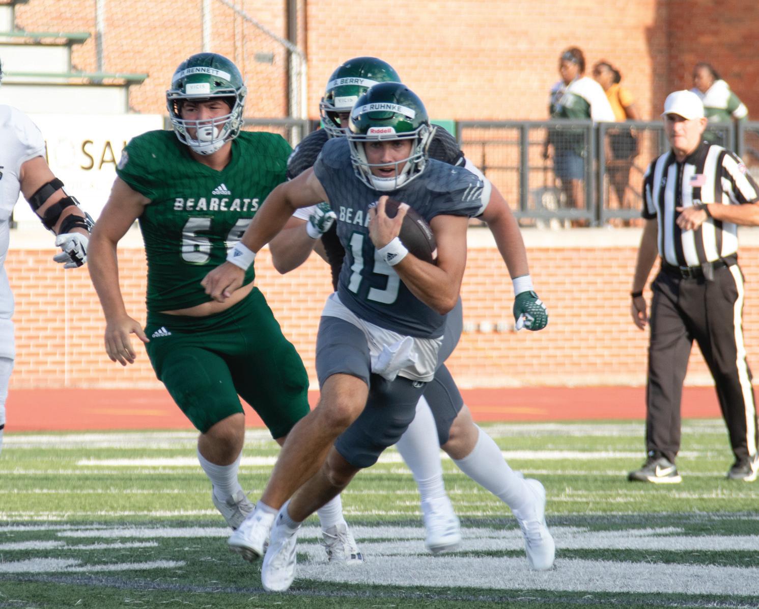 Northwest football junior quarterback Chris Ruhnke scrambles out of the pocket during the Bearcats’ Green and White Scrimmage Aug. 22. The Bearcats are slated to open their season with a home matchup against Minnesota State 6 p.m. Aug. 29.
