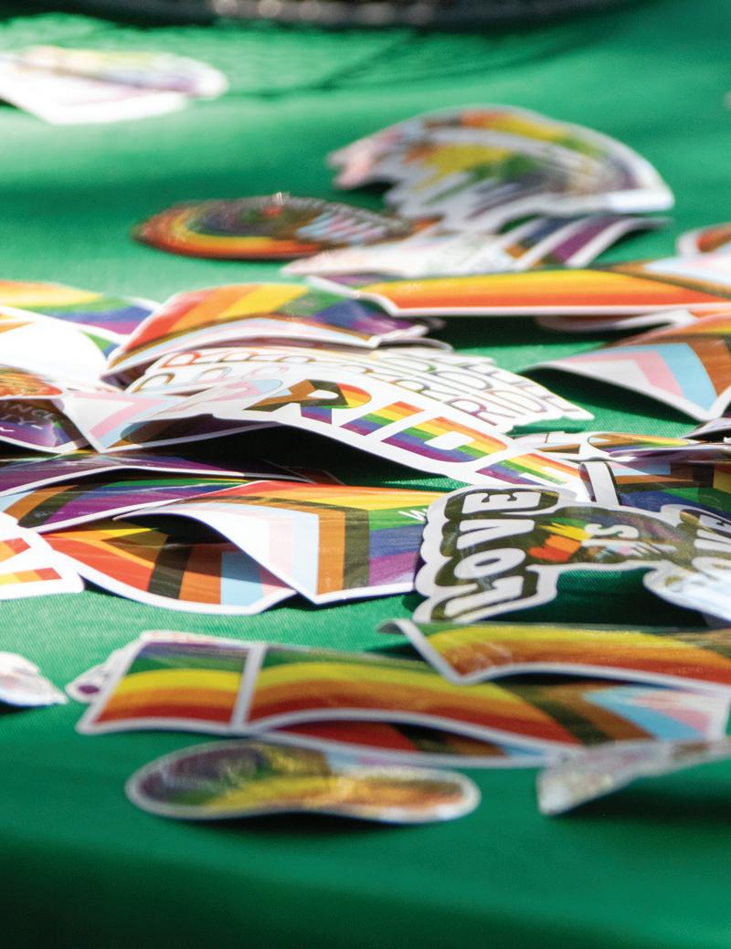Free LGBTQ+ pride stickers are laid out on the Office of Diversity and Inclusion’s table outside the J.W. Jones Student Union Aug. 26.