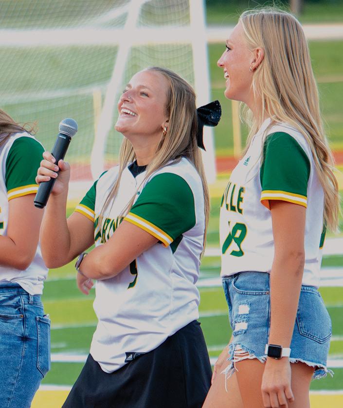 Maryville softball senior captains Brylie Henggeler and Alyssa Cunningham introduce the team to the crowd and talk about the upcoming 2024 softball season.