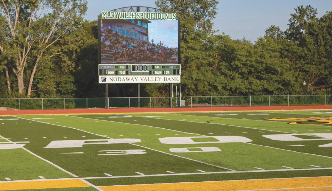 within early September. The Spoofhound softball team will be playing away games before the first home game Sept. 12. The scoreboard is a Daktronics video board. Webb said the board will enhance game day or any activities in the stadium. Maryville High School students will have the opportunity to use the video screen to learn how to produce content and operate the different equipment.
