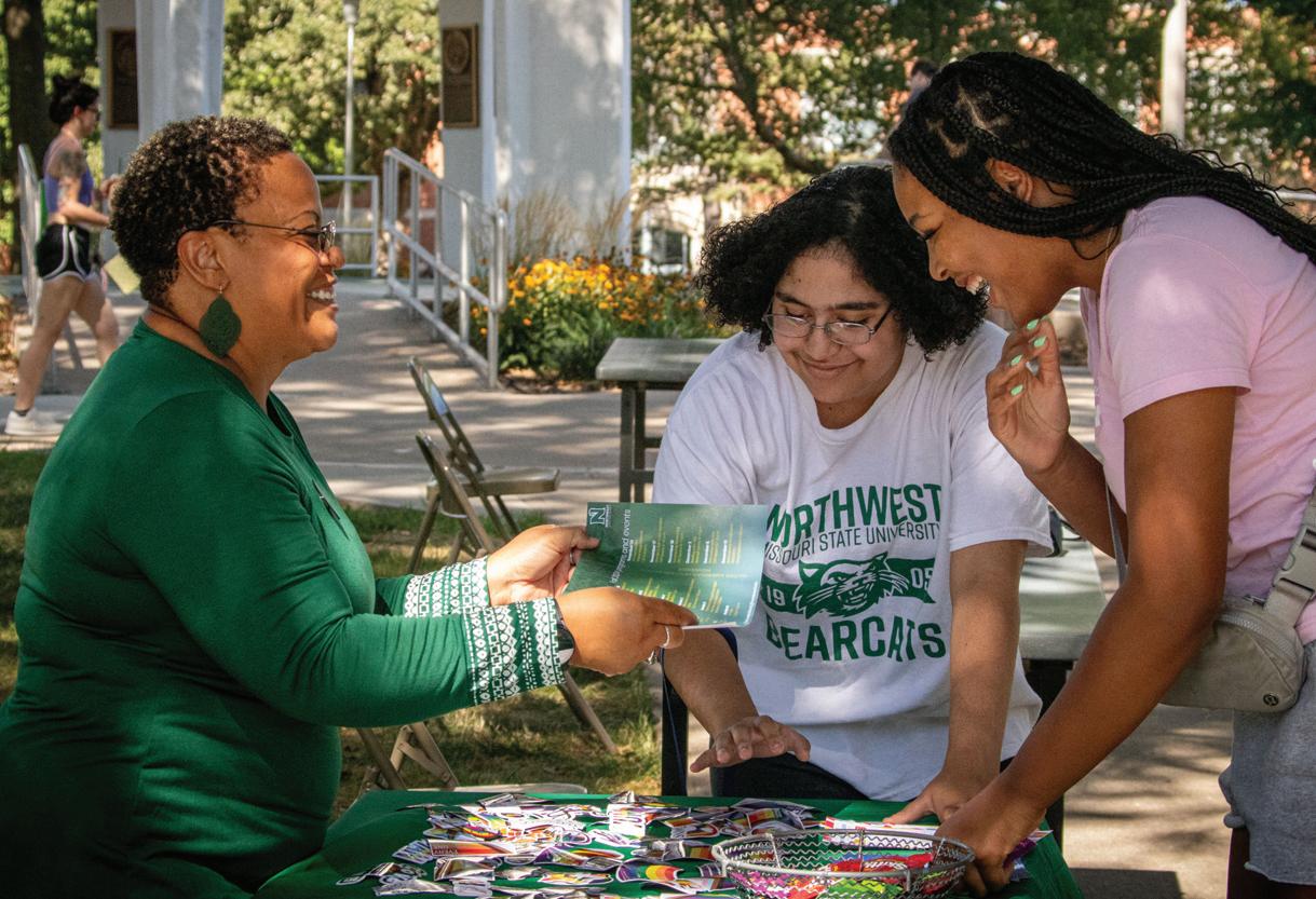 Latonya Davis talks with students about the fall 2024 programs and events hosted by the Office of Diversity and Inclusion Aug. 26. The O.D.I. is hosting multiple events such as Safe Zone which teaches how to be an LGBTQ+ ally.