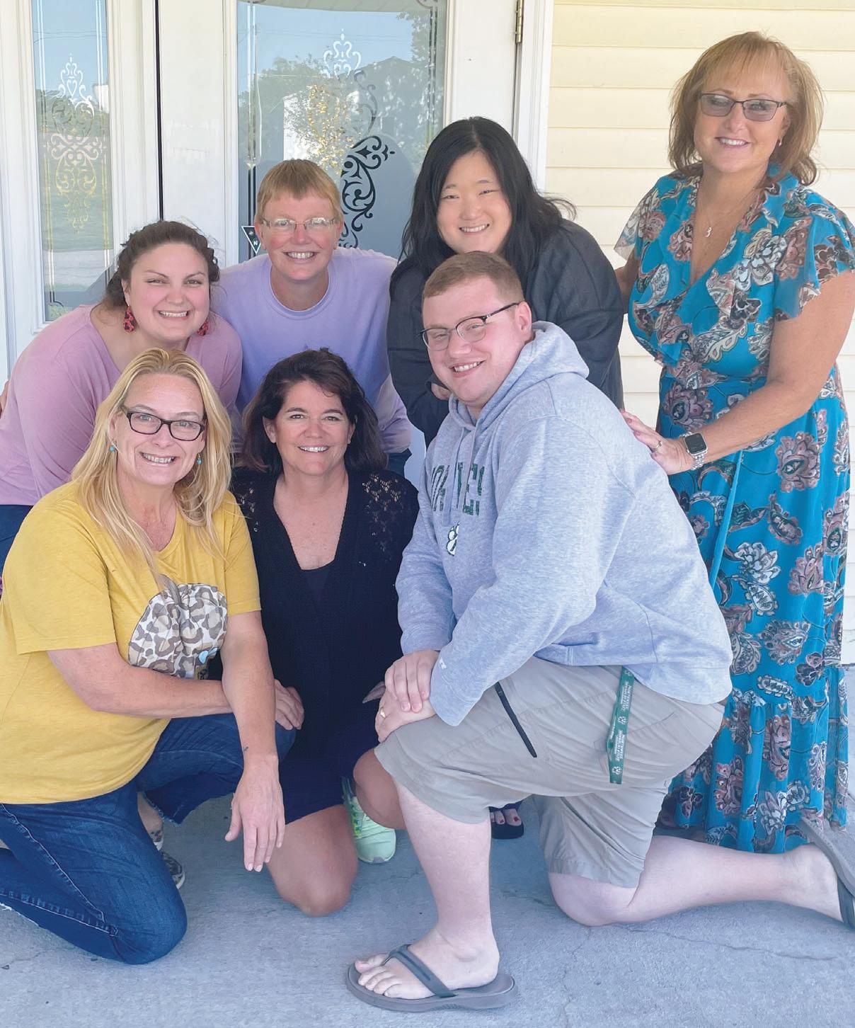 The North Star team poses in front of its 20 bed shelter at 1220 E. Second St. Front: Sherry Brown, Krista VonBehren, Wyatt Williams. Back: Julia Day, Linda Mattson, Meghann Kosman, Cindy Lemar.