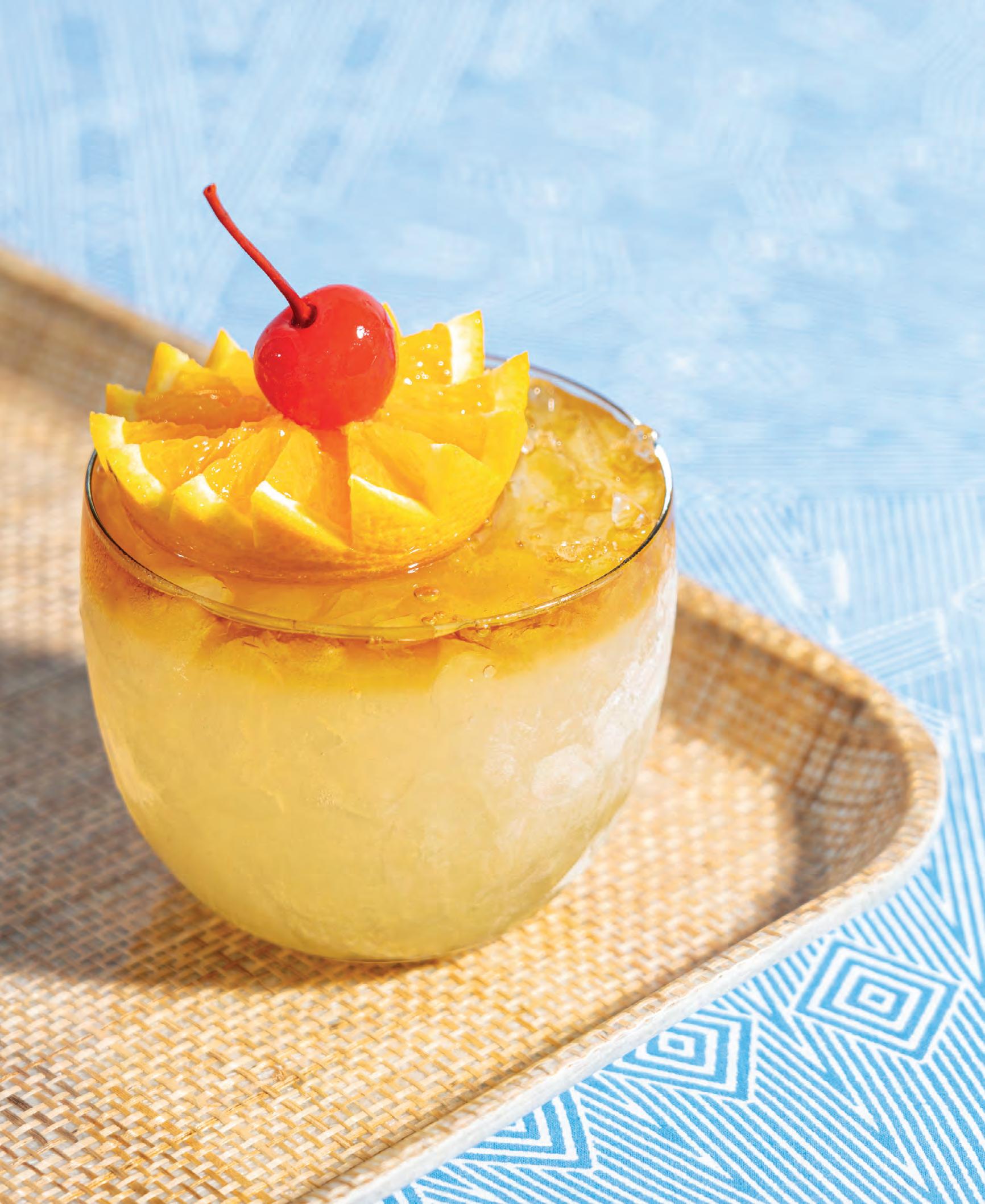 Enjoying an ice cold Mai Tai (meaning “out of this world” in Tahitian) is a refreshing escape during our warm summer months. One sip and you’ll easily find yourself basking on an island or sandy beach. The iconic blend of rum, lime, and orgeat (a sweet almond syrup with hints of orange flower water) perfectly complements the sunny, breezy July conditions we’re having on the water. This version, which includes a splash of curacao and an orange-cherry topper, is from the cocktail book Tiki with a Twist by Montauk native Lynn Calvo, whom I had the pleasure of working with on this fun-filled project.