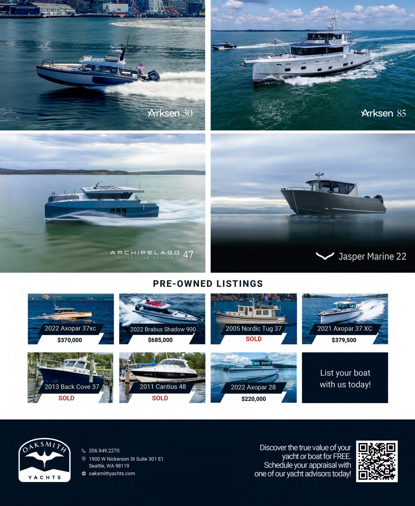 206.623.5200 901 Fairview Ave. N, Suite A-150 Seattle, WA 98109 hamptonyachtgroup.com 68’ HAMPTON 2004 65’ GRAND BANKS 2008 33’ FAIRLINE 2021 Robert Fiala 425.765.7850 Ben Johnson 425.508.3101 Pete Sponek 253.720.1917 425.876.2486 64’ OCEAN ALEXANDER 2005 34’ MERIDIAN 2006 52’ OCEAN ALEXANDER 2004 36’ CHRIS CRAFT 2006 39’ TRAWLER 2019 25' PROTECTOR 2001 Your Pacific Nor west destination for new Hampton & Endurance yachts since 2008 ORDER YOURS TODAY E 76’ HATTERAS 1980/2022 PK 58’ HAMPTON 2010 54’ WEST BAY 2005 630 2025 ENDURANCE 658 MORE INFO
