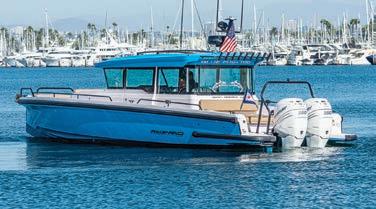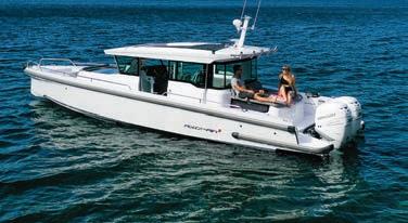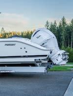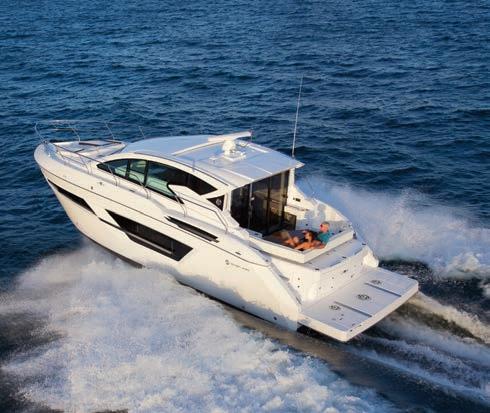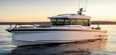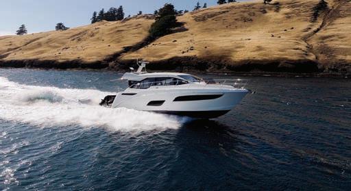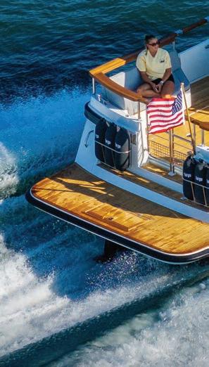 e boats are set up with smart cruising features and systems like analog gauges at the helm for redundancy, and wide side decks for easy fender placement and docking. e athwartships fuel tanks can be lled from recessed lls on both sides of the boat. Electrical panels for both AC and DC power are in a convenient cabinet near the main salon door for seamless control when entering or exiting. Designed by boaters for boaters, the access to systems and panels provides ease in use.