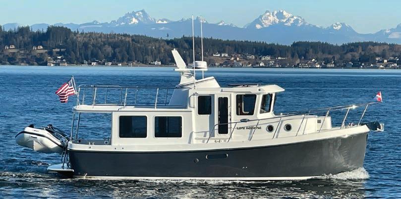 e rst vessel arrived in the middle of Covid in 2020 and was quickly delivered to her owner. Because of the unique circumstances of the pandemic, not many people were able to get aboard that rst boat but nevertheless the program moved steadily onwards. Since that time, multiple boats have been sold, mostly here in the Paci c Northwest but there is an Apollonian 52 on the East Coast, too. As the newest Apollonian 52 was recently o -loaded from a ship in Everett, I caught up with her owners as they watched their new boat settle into the waters of Possession Sound.