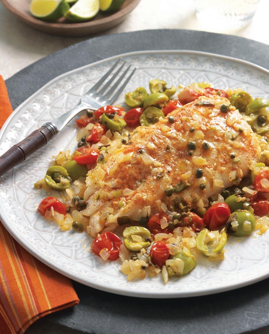 Bring out the best in Paci c Northwest cod with this aky, avorful Veracruz-style preparation that is nished with a medley of tomatoes, peppers, and olives.