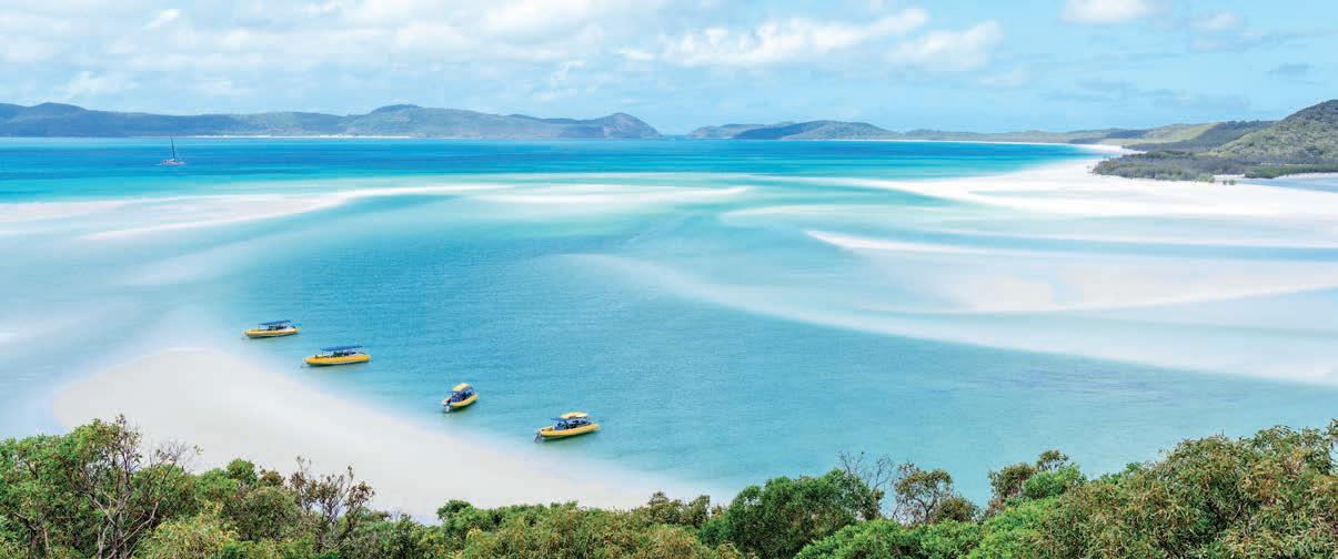 e Whitsunday Islands o er divine waters, idyllic scenery, and incredible diving opportunities, all from their stunning situation in the Great Barrier Reef.