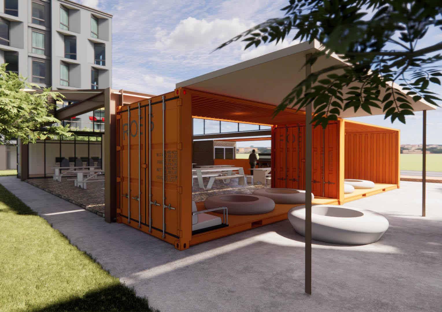 A man’s dream of serving students, one coffee at a time The client requested a design for a Coffee Shop. The coffee shop will be situated at the University of NorthWest University, Mafikeng. One of the desires for the design was that shipping containers be used as part of the design. The brief includes programmatic functions such as a Social Lounge, Kitchen, Cold Room and Activity Lounge. The design response was creating a Ushaped typology which uses shipping containers to define the space. On top of the Social Lounge there is an Entertainment space in which patrons can enjoy their coffee. The steel structure is used for shelter for the activity Lounge and bring a sense of community for the students, to gather. The container doors can be opened to create an extension of space.