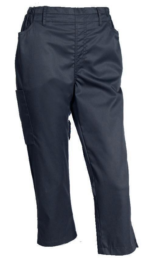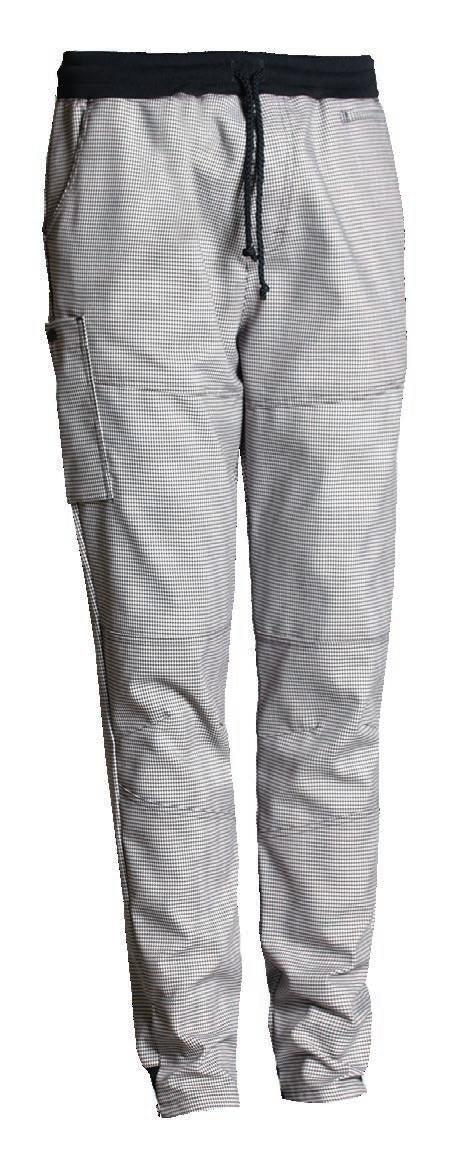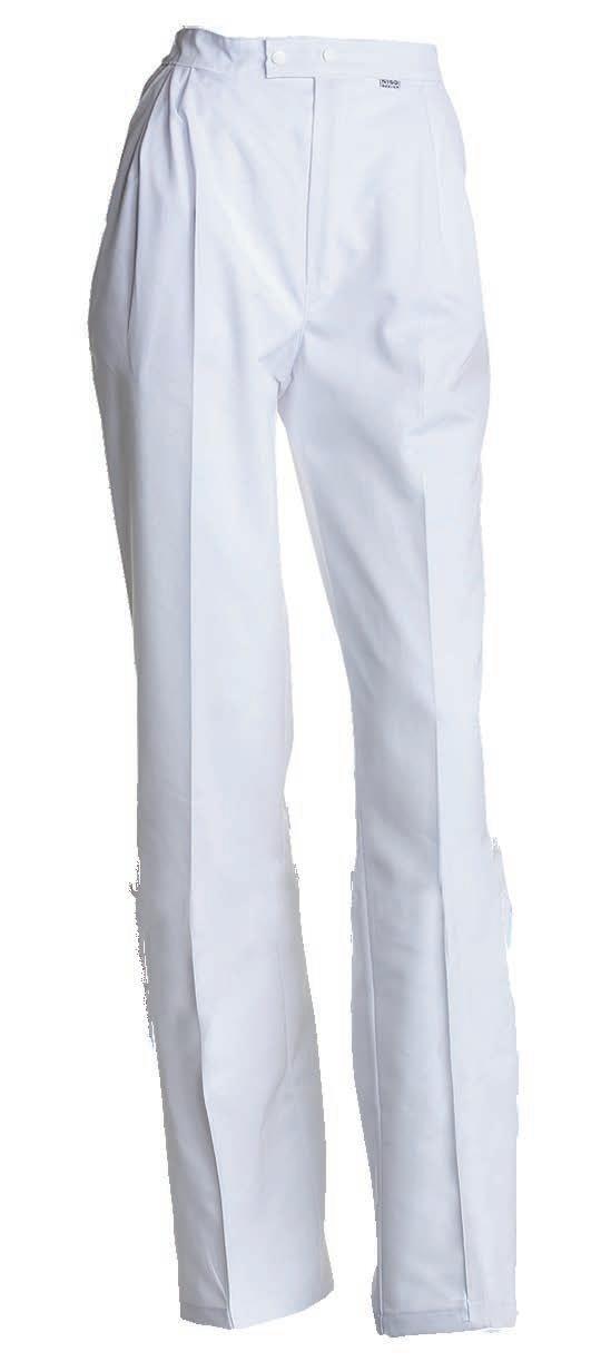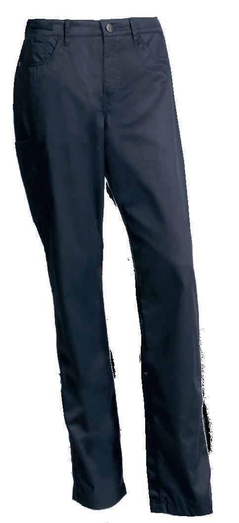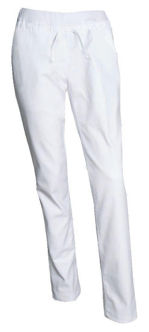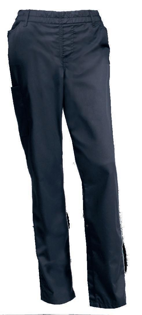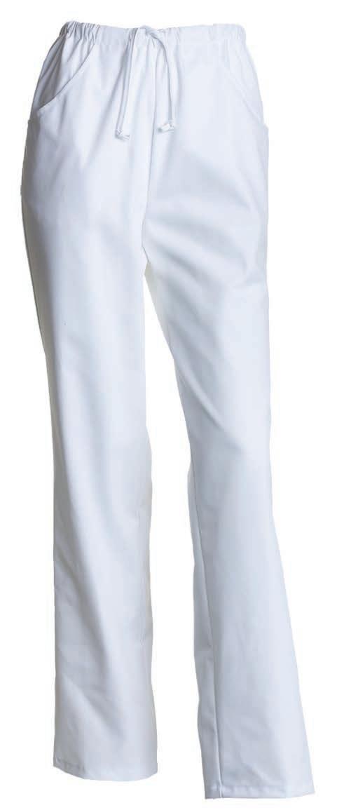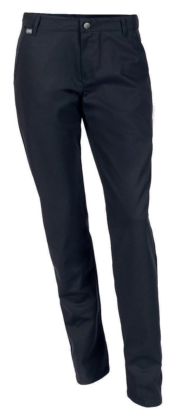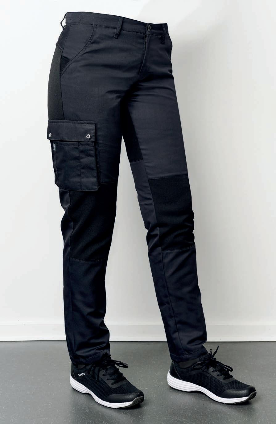 Slidstærk damekokkebuks med regulerbar elastik i linningen, som sikrer god komfort og øget levetid. Modellen har skrålommer og to baglommer.