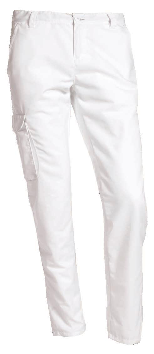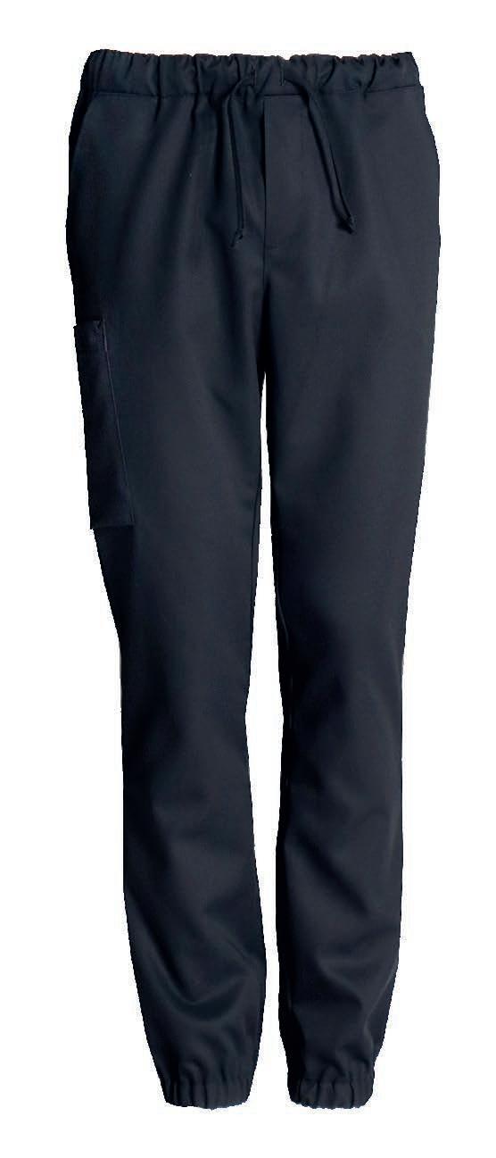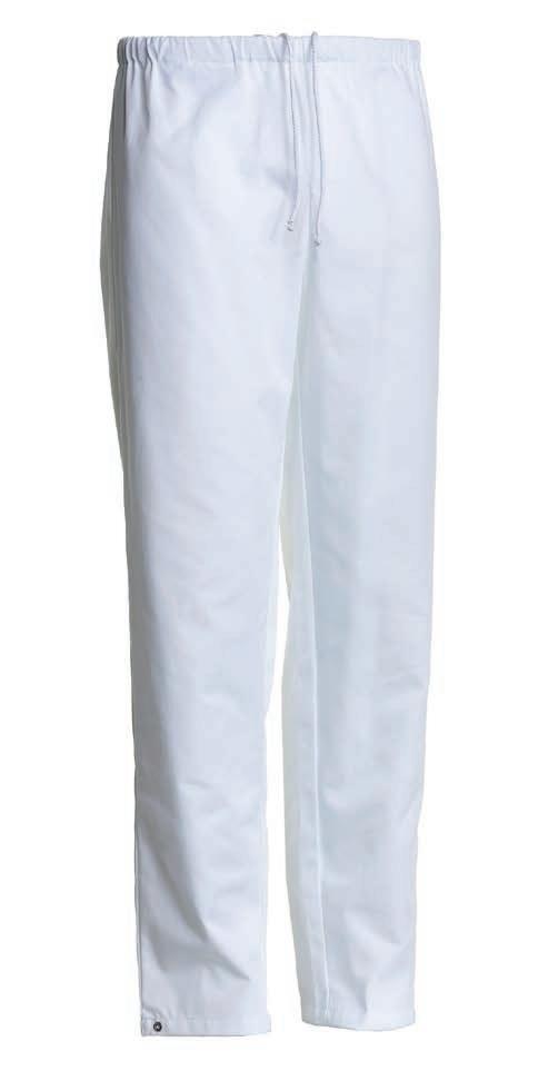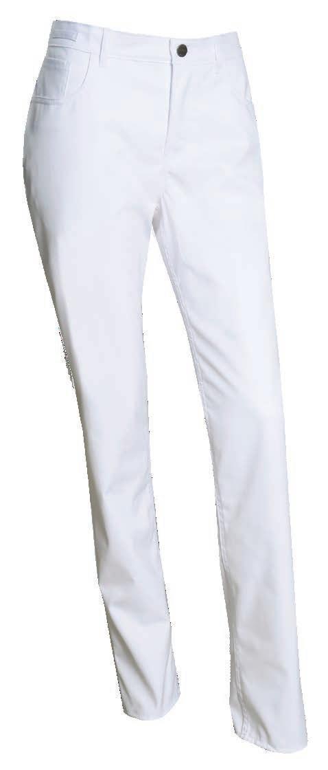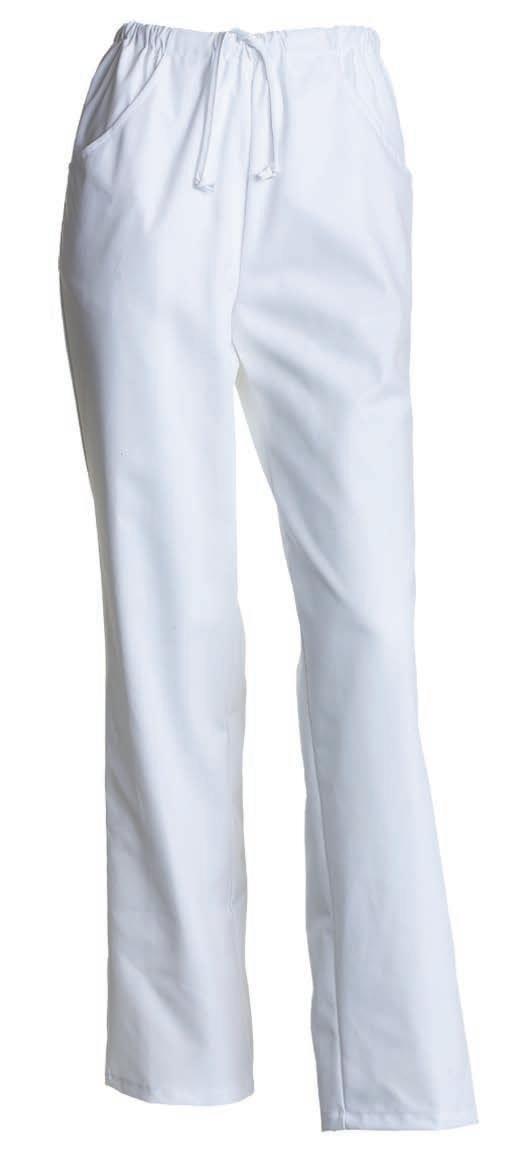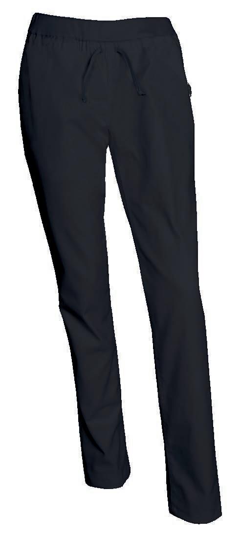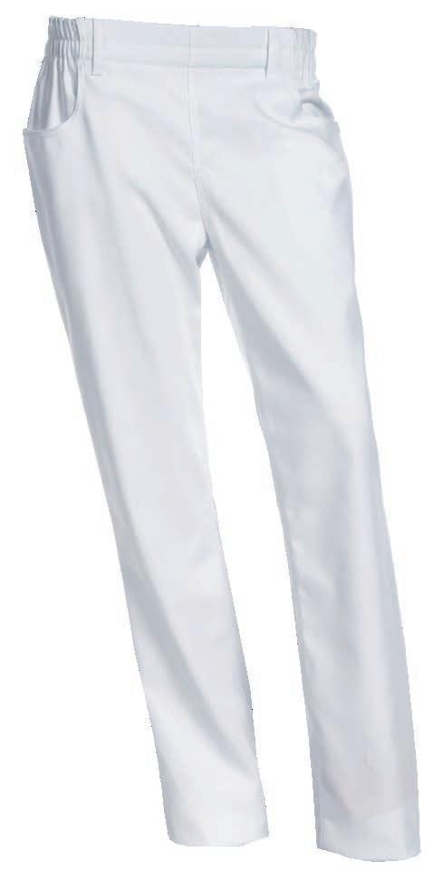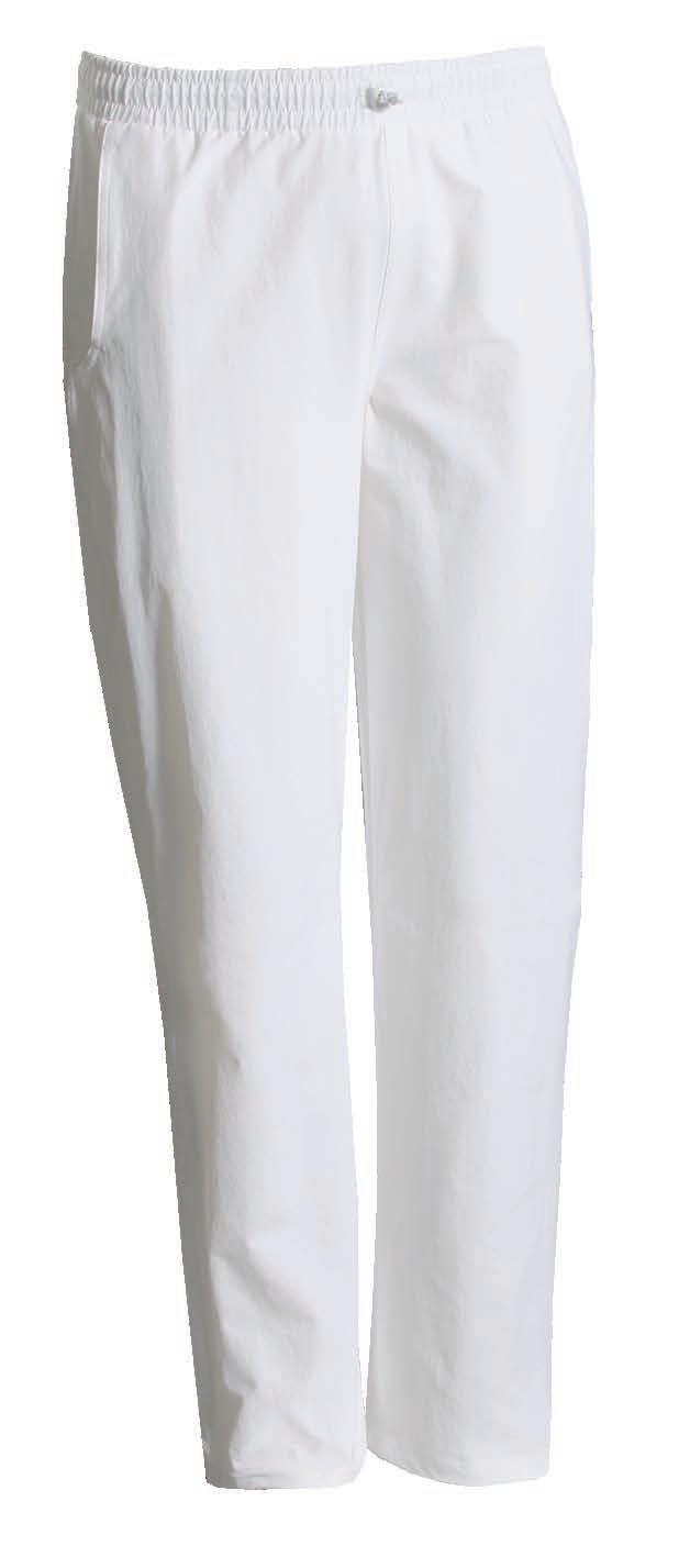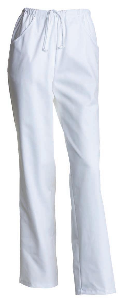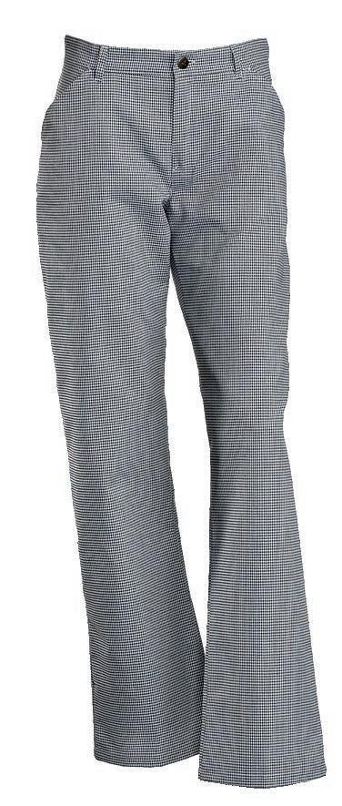 Slidstærk damekokkebuks med regulerbar elastik i linningen, som sikrer god komfort og øget levetid. Modellen har skrålommer og to baglommer.