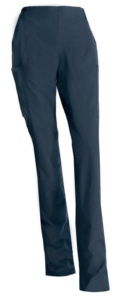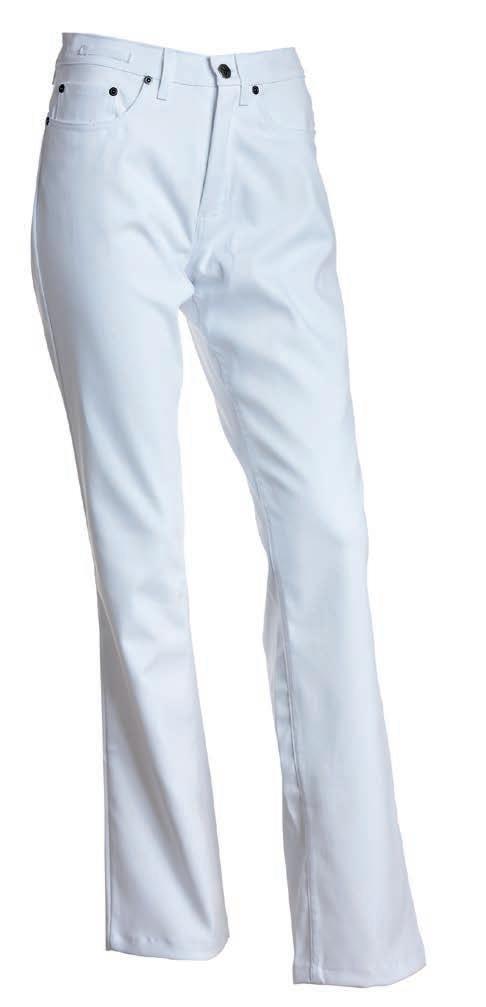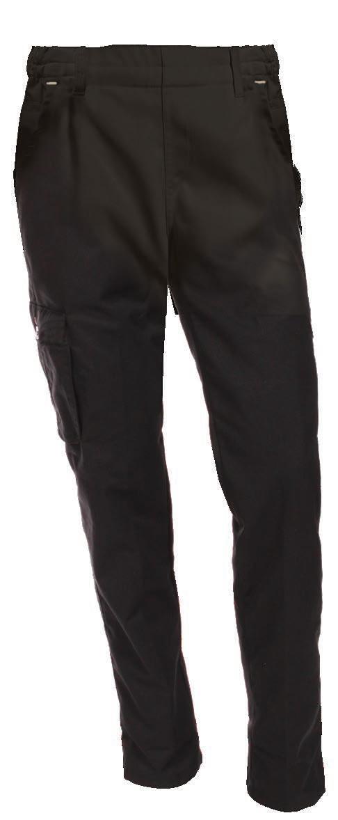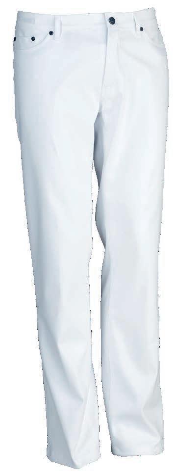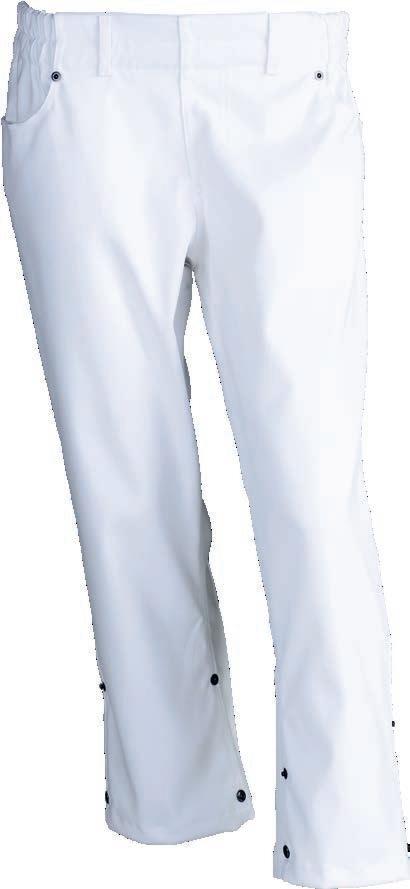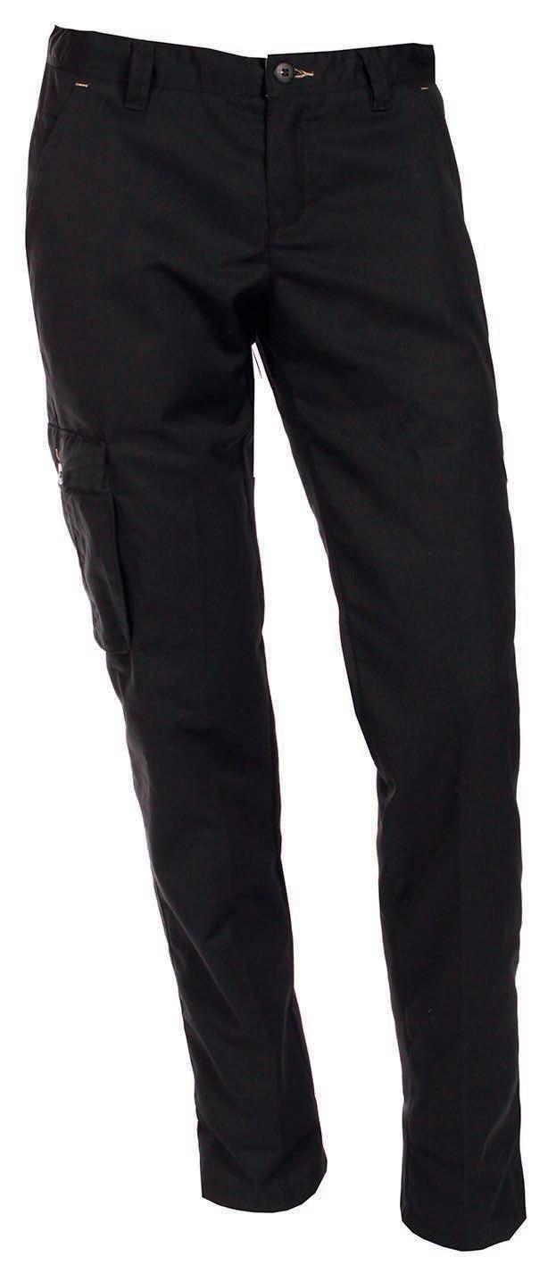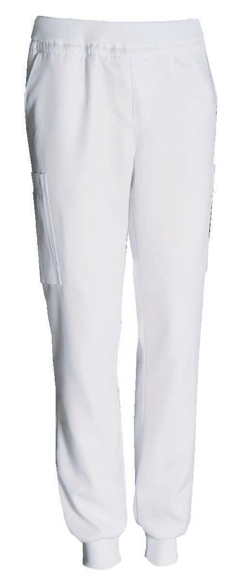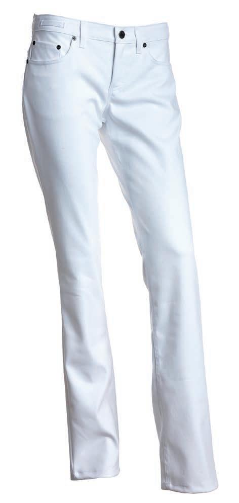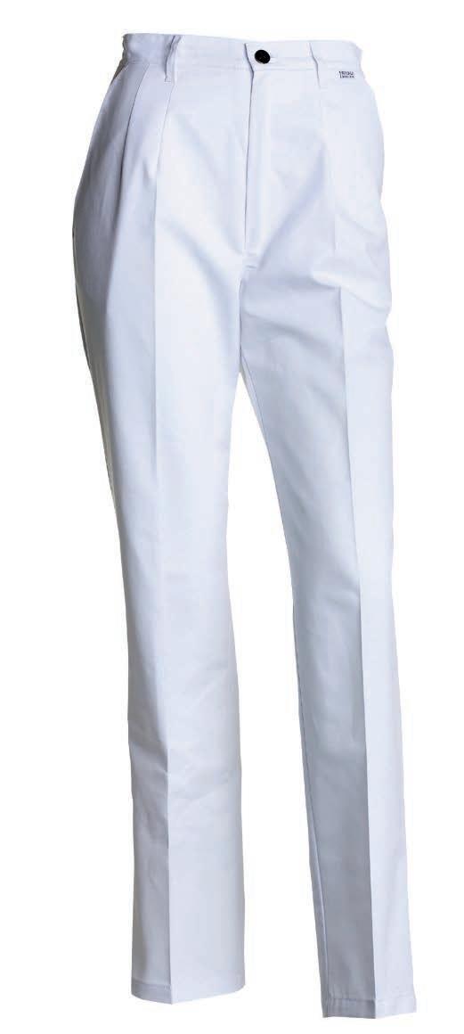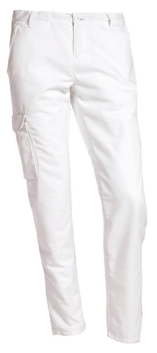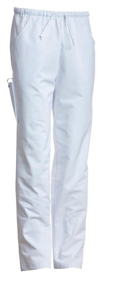 Slidstærk damekokkebuks med regulerbar elastik i linningen, som sikrer god komfort og øget levetid. Modellen har skrålommer og to baglommer.