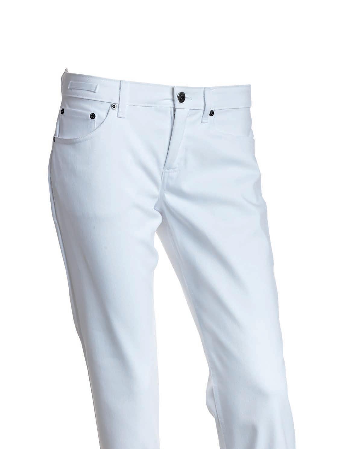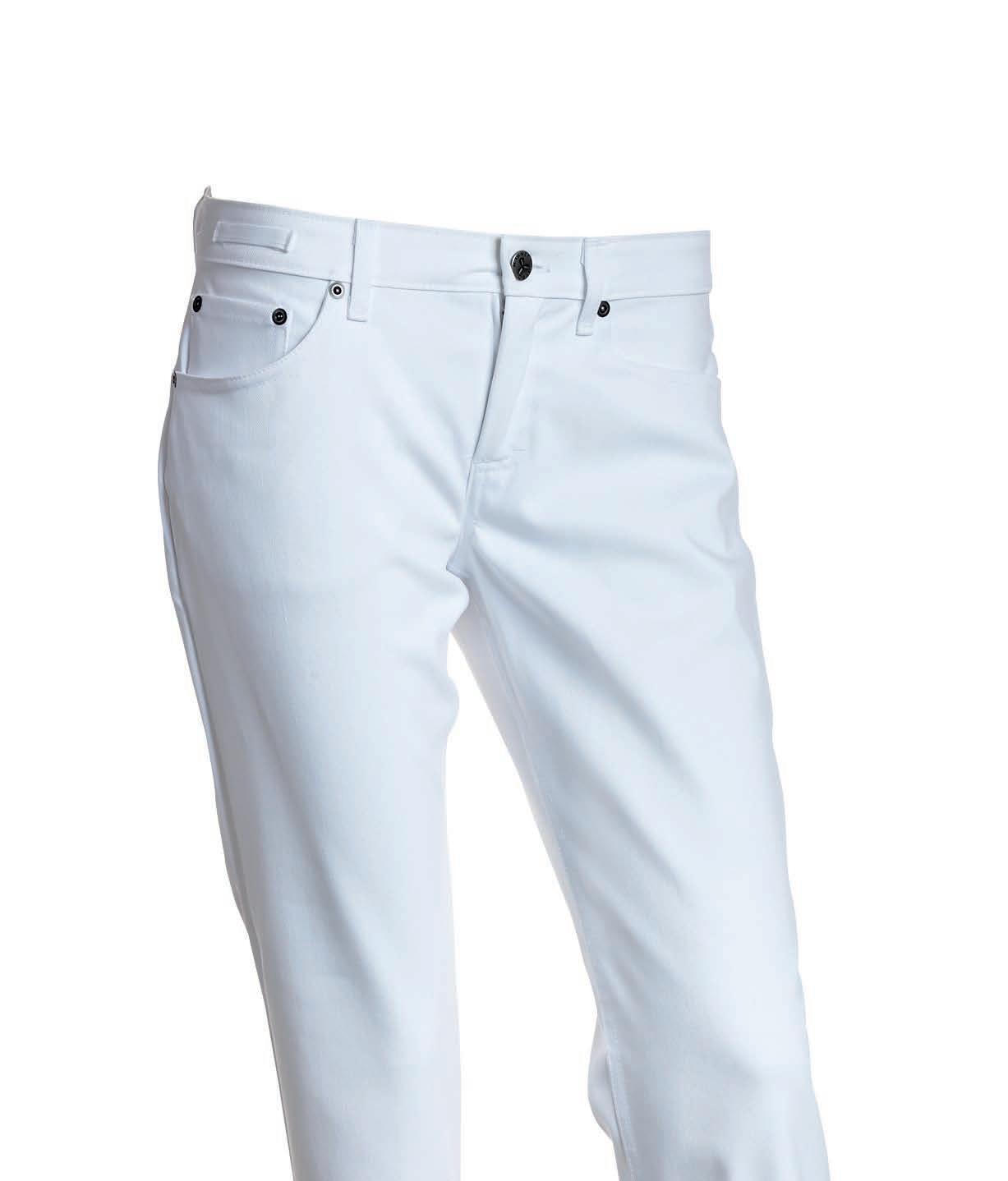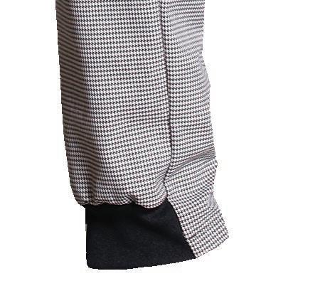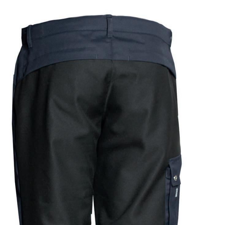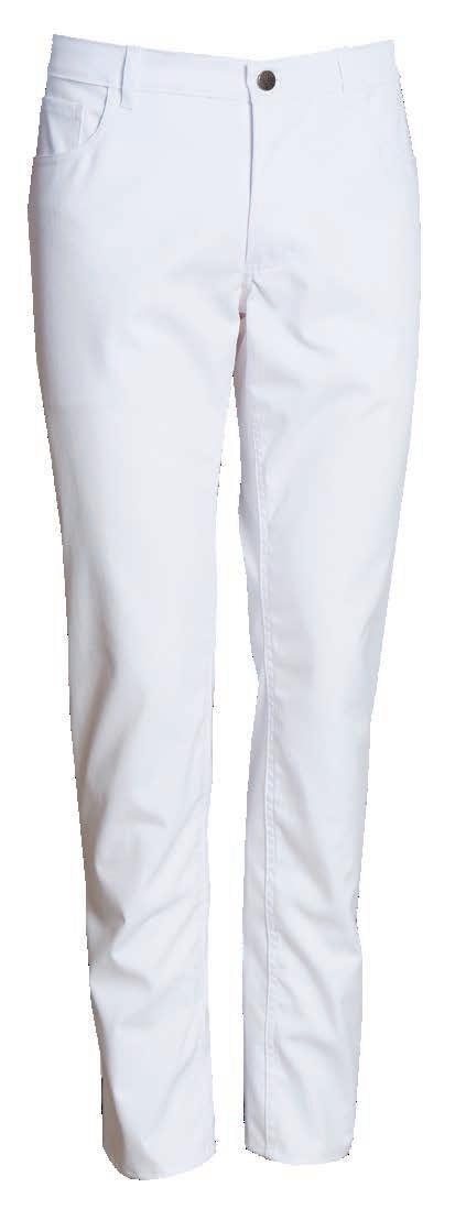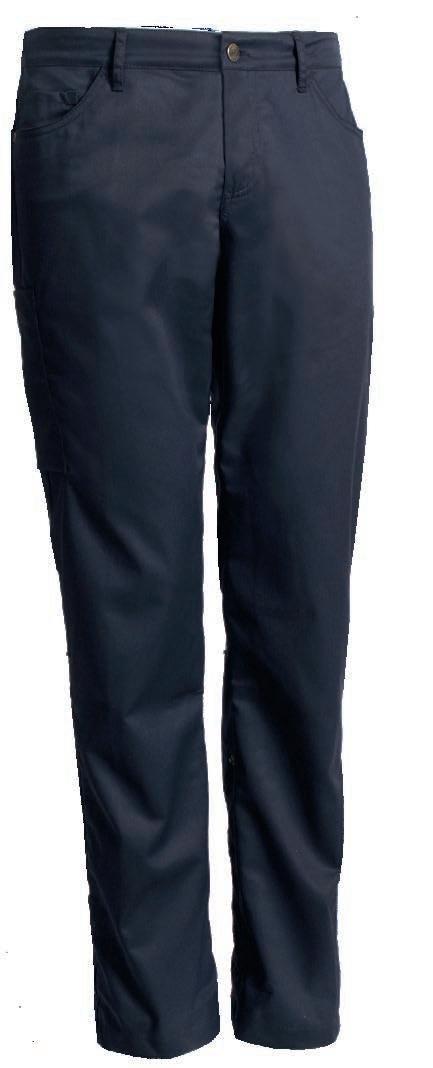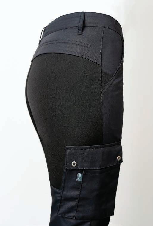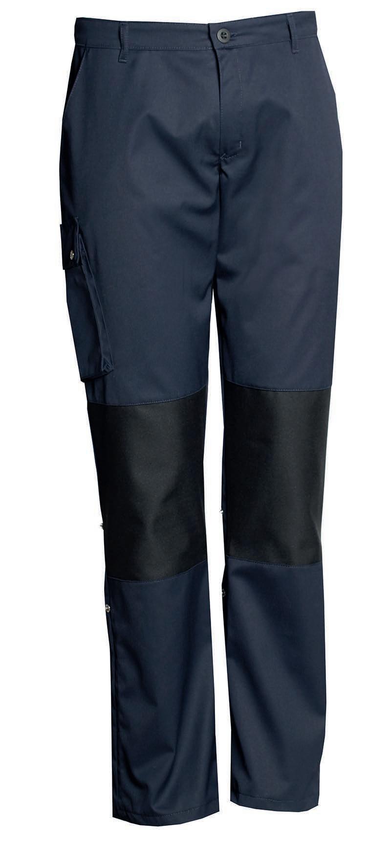 Slidstærk damekokkebuks med regulerbar elastik i linningen, som sikrer god komfort og øget levetid. Modellen har skrålommer og to baglommer.