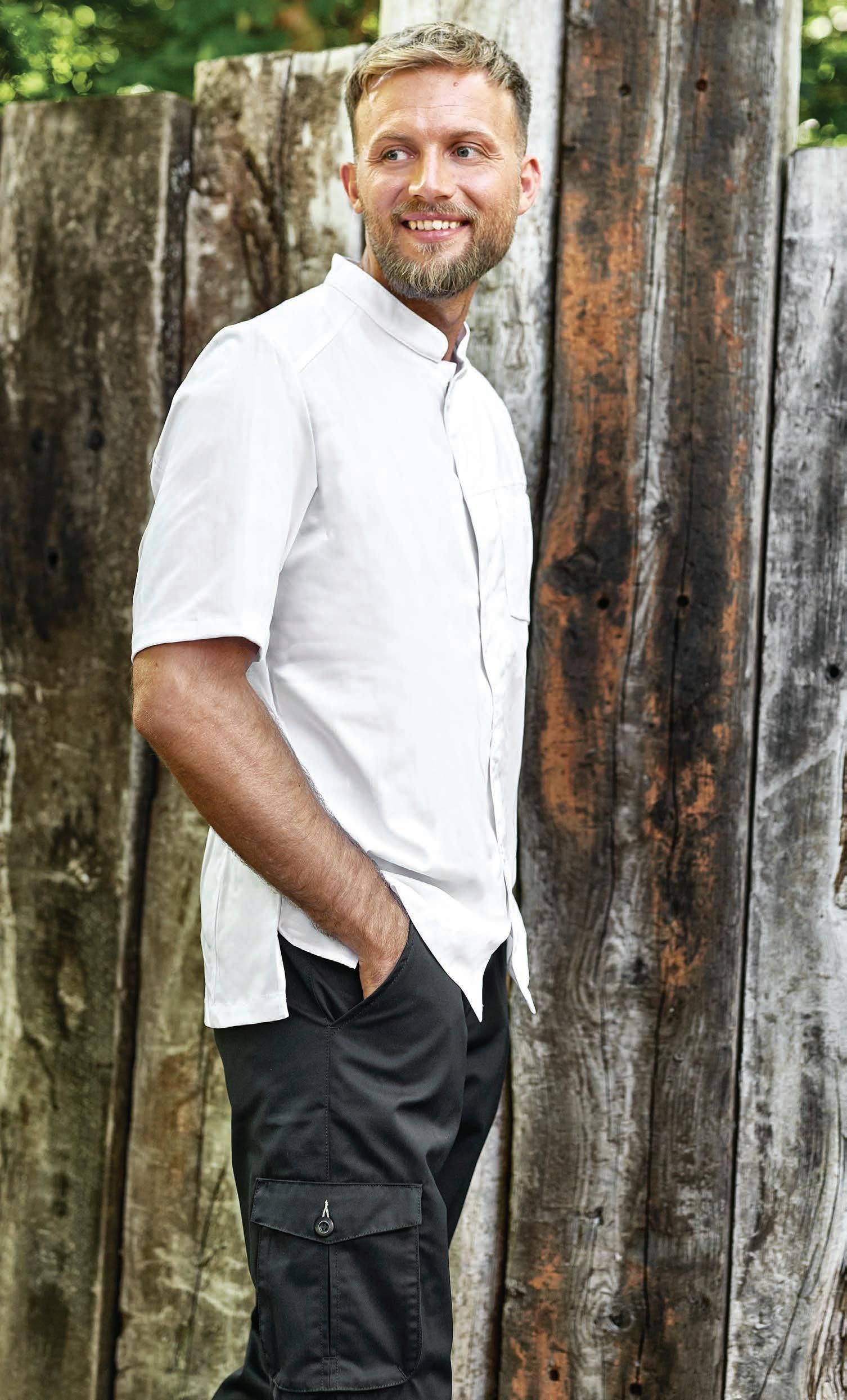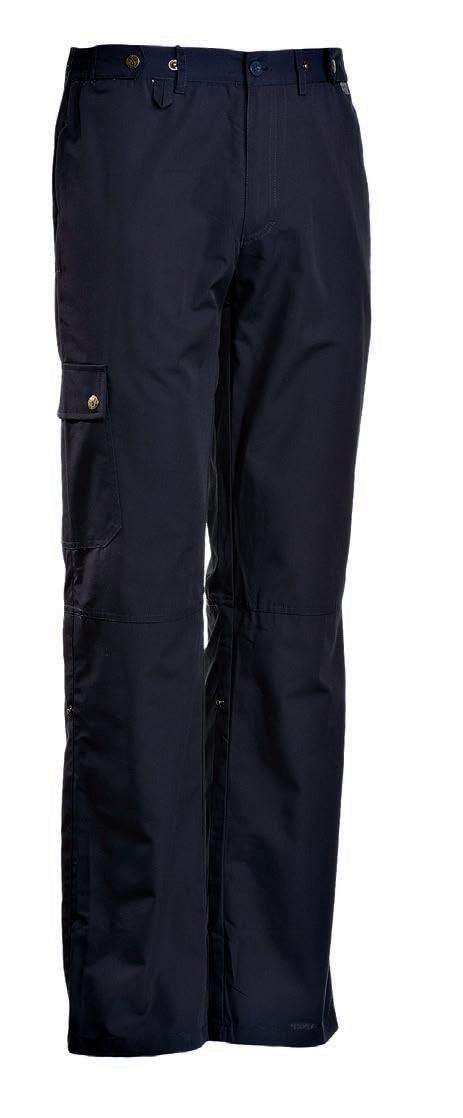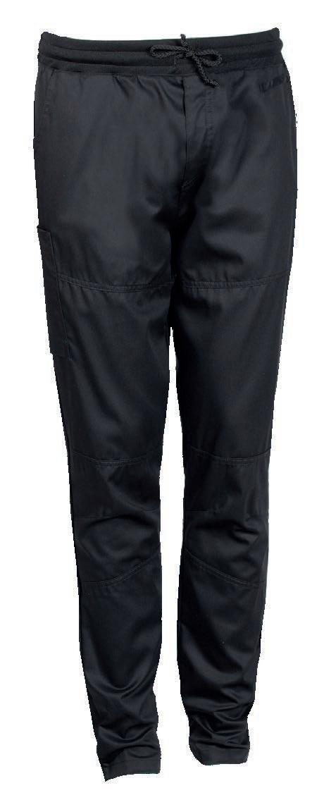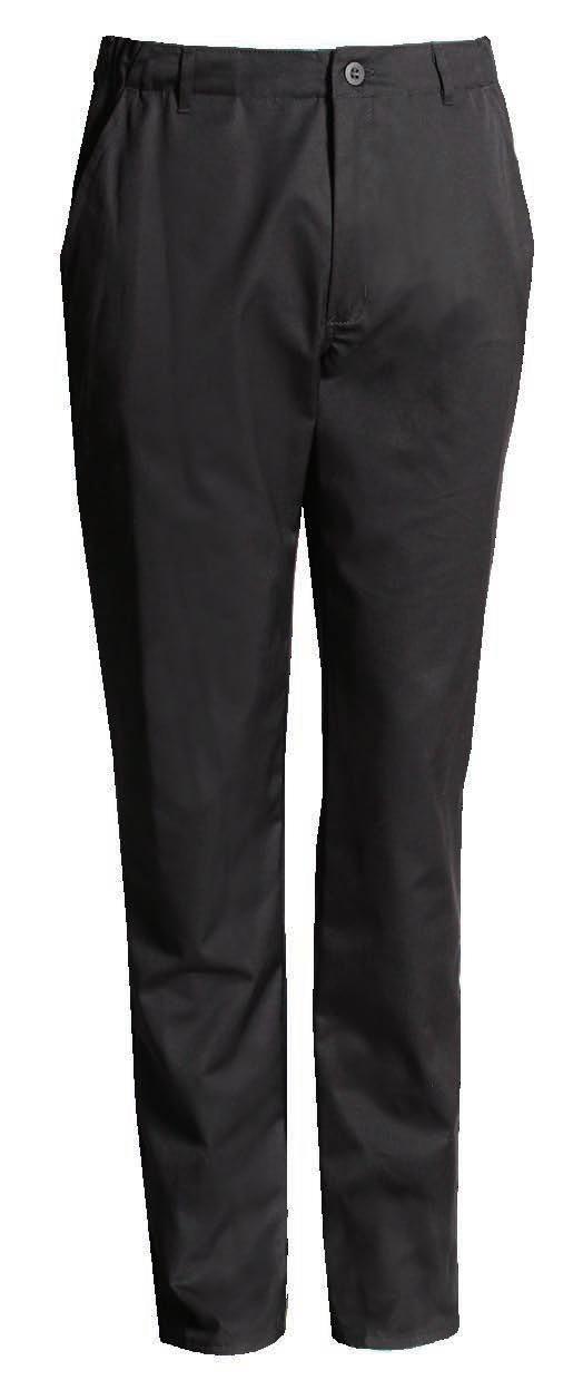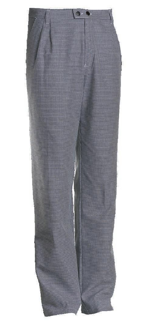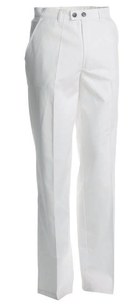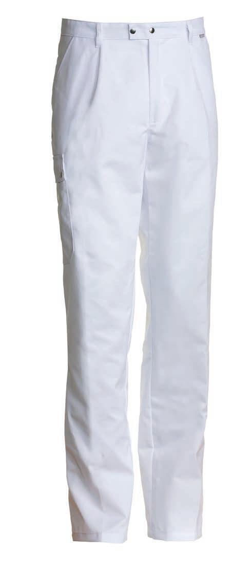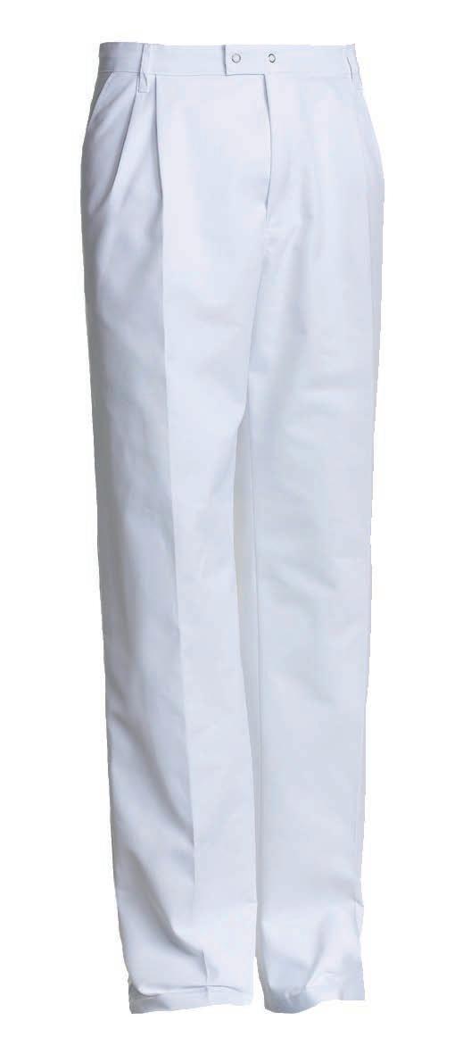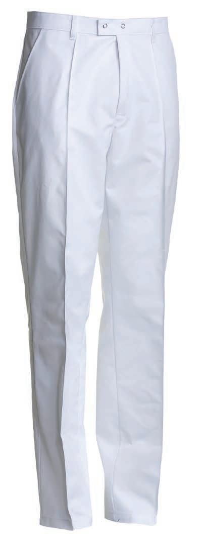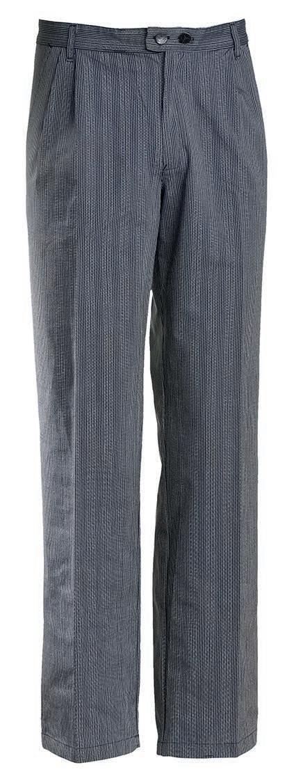 Slidstærk herrekokkebuks med læg og lommer. Bukserne har bæltestropper, to stiklommer og baglommer.
