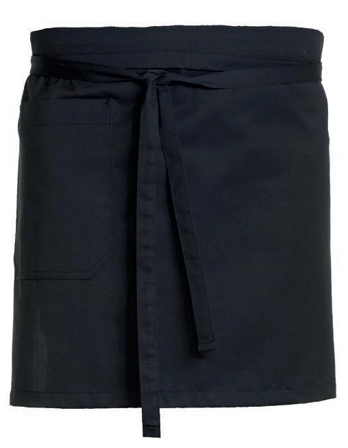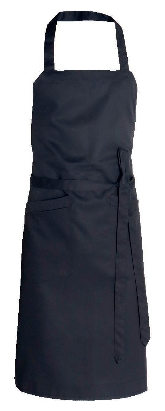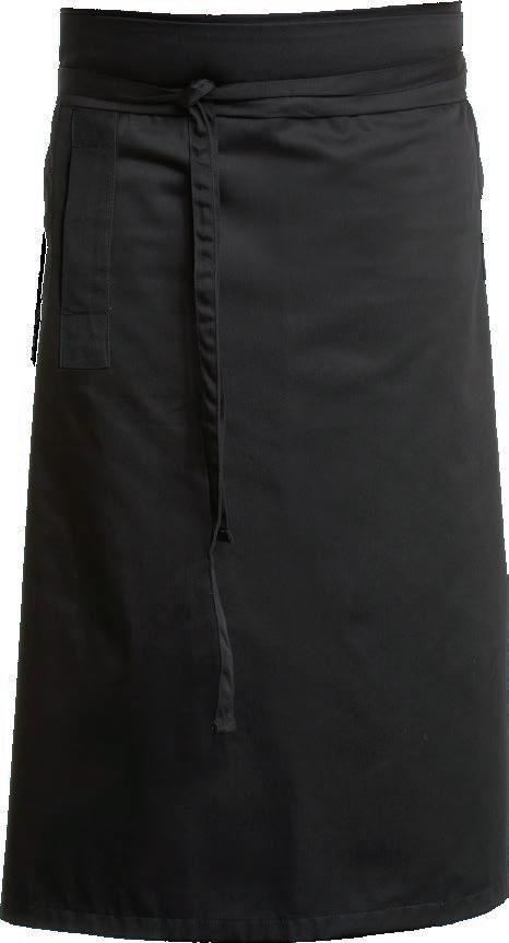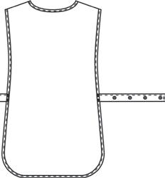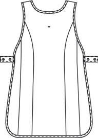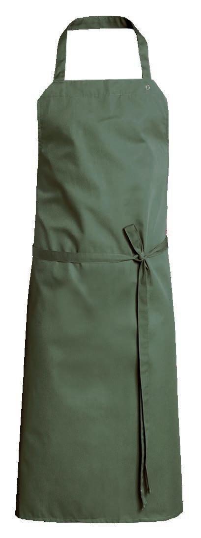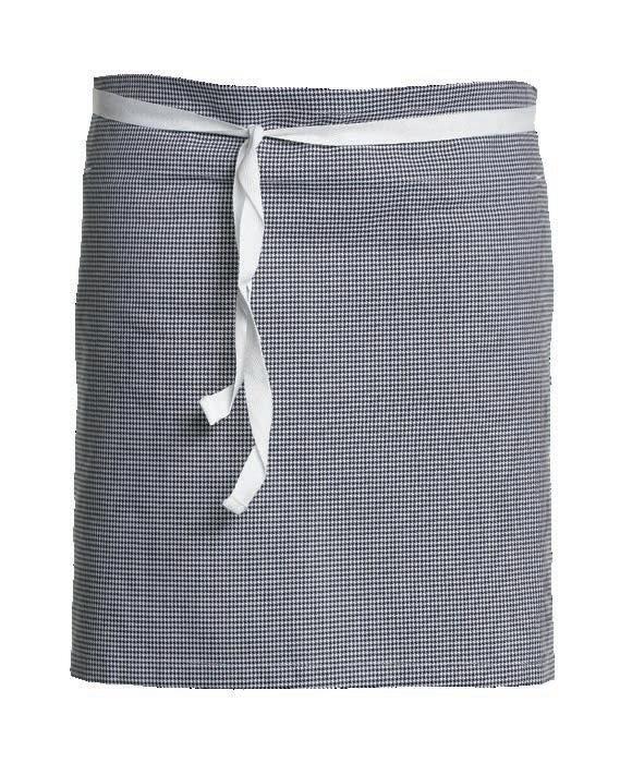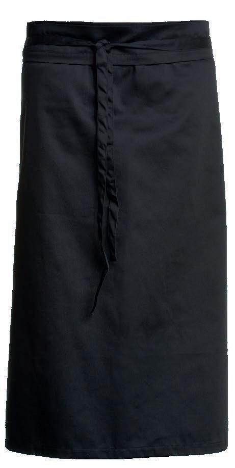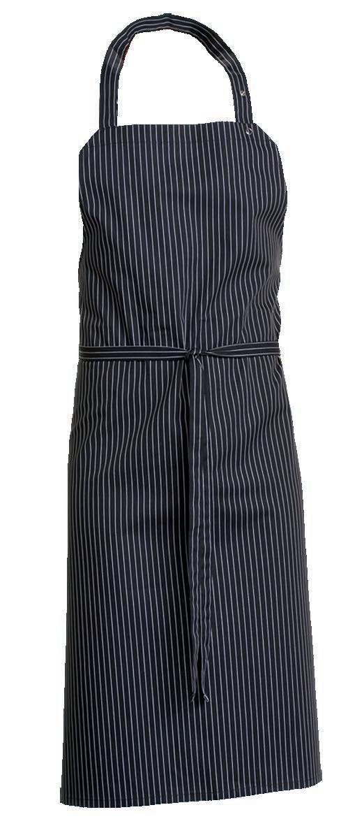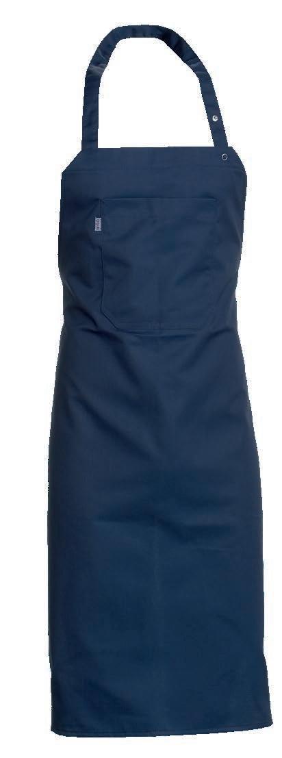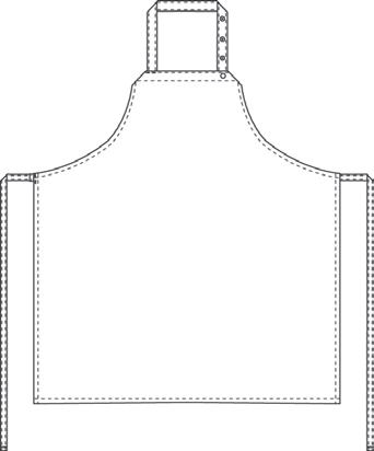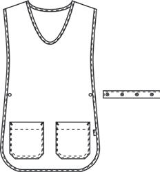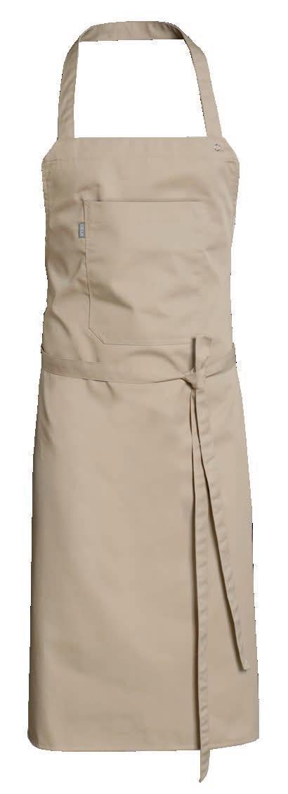 Kuskeforklæde med bindebånd, der enten kan bindes bagpå eller føres rundt om livet for at give facon. Længden på nakkestropperne kan justeres med trykknapper.