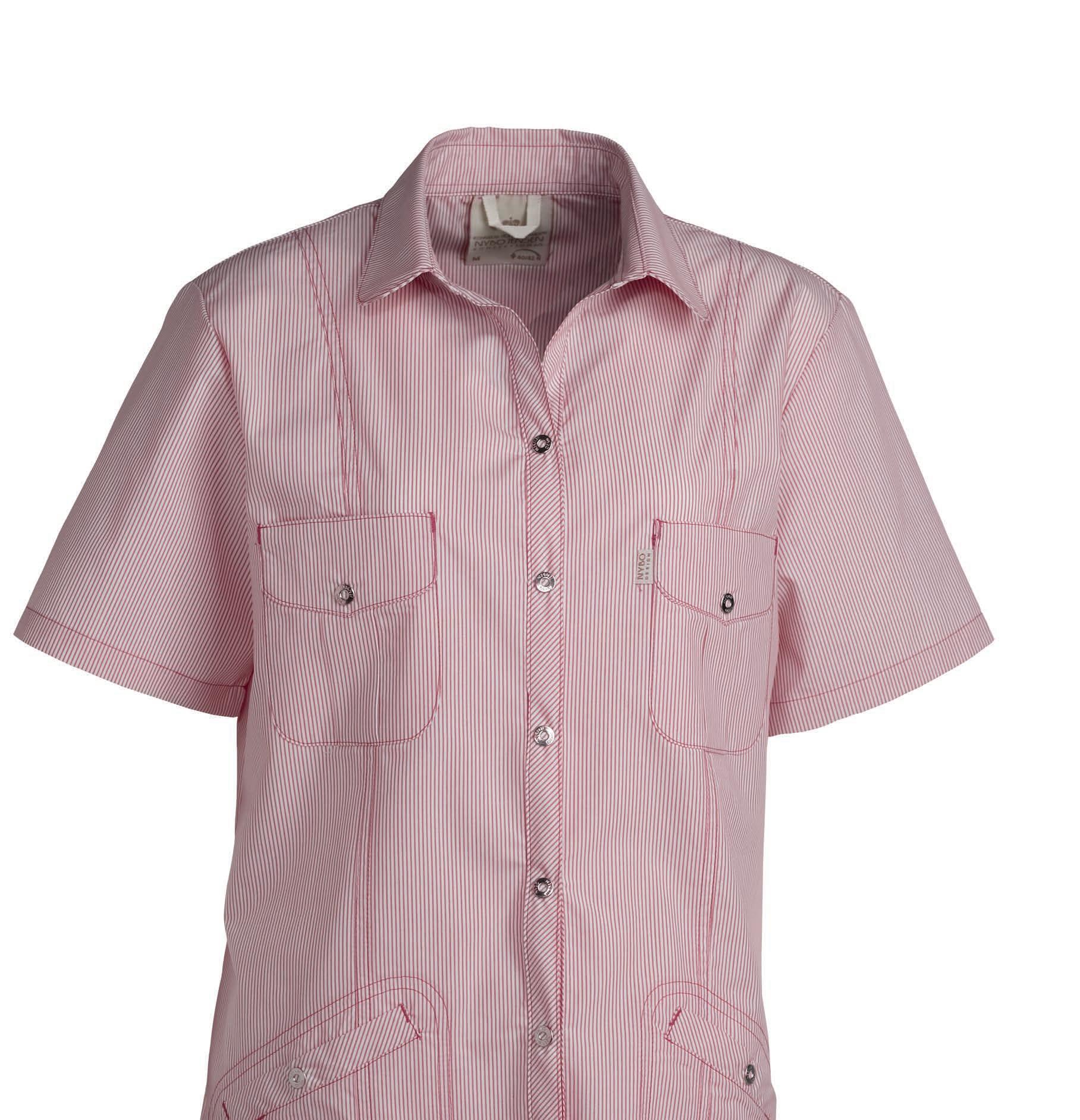 Feminine, gently form-fitting polo shirt. This shirt is made from extra hard-wearing fabric with reinforcement at the neck and shoulders. It has undergone a pre-shrinking process at very high temperatures both before and after dyeing for extra stability and a long life. XS-6XL