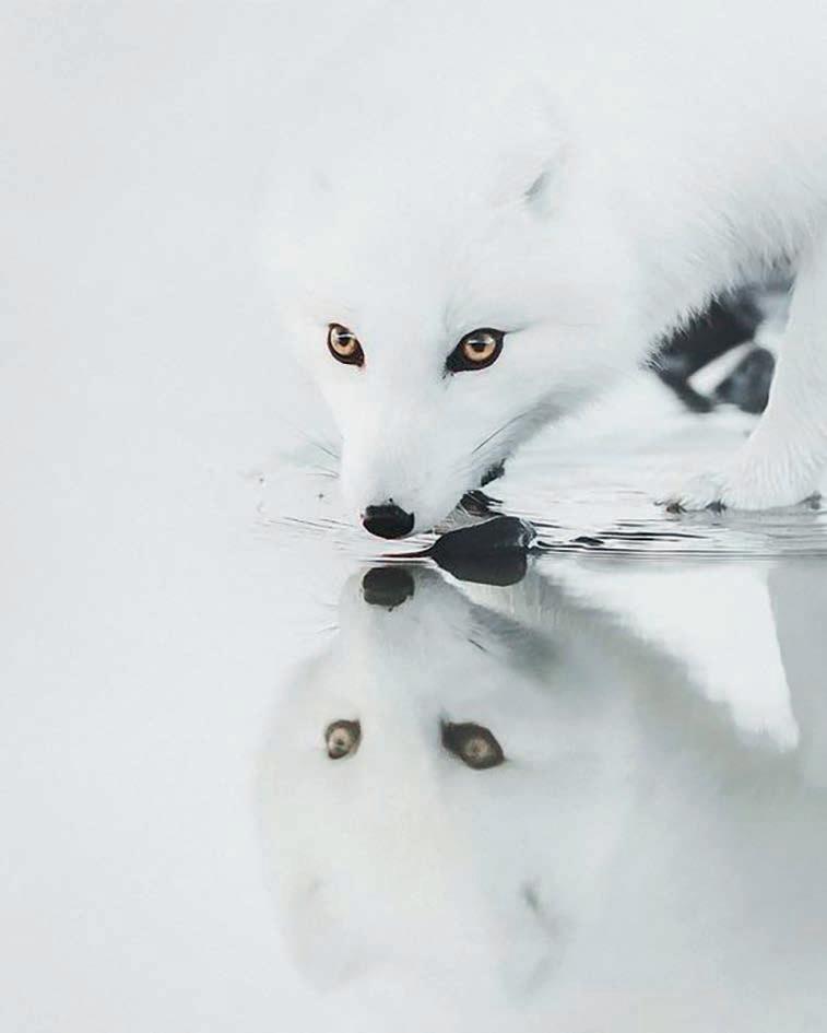 White unisex-coat with lapel. It has an internal left breast pocket and internal hip pockets with access on right side. The sleeve openings can be adjusted with snap fasteners. The cut is straight up and down, and it fastens at the front with concealed snap fasteners.