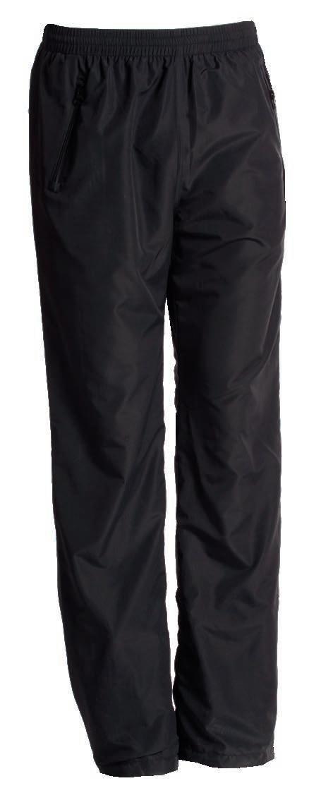 Trousers with inner elastic and tie cord at waist. The leg fastenings can be adjusted with snap fasteners.