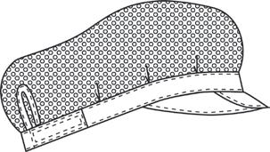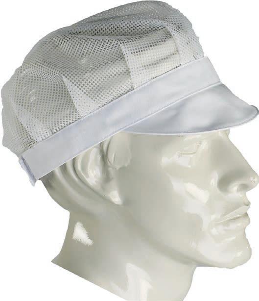 Cap with hairnet. This cap has a smart peak and non-elasticated edge that can be adjusted in size with a velcro fastening at the back of the head. This style therefore fits all head sizes.