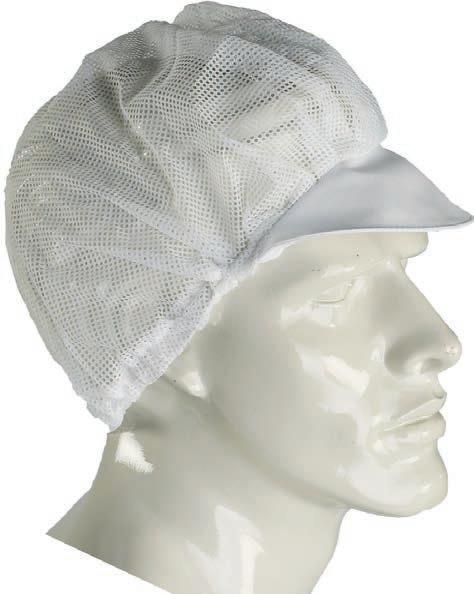 Cap with hairnet, completely covering the back of the head. This cap has a smart peak and elastic right round the edge of the net and therefore fits all head sizes.