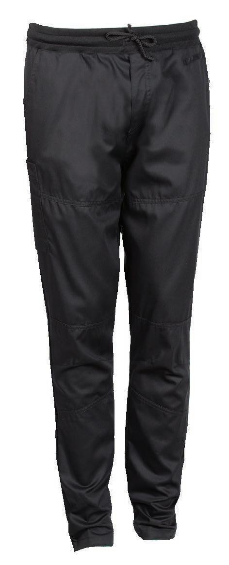 Eine von “Street Style” inspirierte Hose mit legerer Passform an Bund und Hüfte, schmal zulaufend und enganliegend am Bein – perfekt für Männer wie Frauen. Rippbündchen und Bindeband im Bund sowie Rippbündchen am hinteren Beinabschluss verleihen der Hose einen coolen Look und hohen Tragekomfort. Taschen vorne und hinten sowie eine verschließbare Oberschenkeltasche bieten zahlreiche Möglichkeiten zum Verstauen diverser Hilfsmittel für den Arbeitsalltag. Am Bund befindet sich eine diskrete Schlaufe, an der für die Arbeit im Servicebereich oder in der Küche ein Geschirrtuch befestigt werden kann.