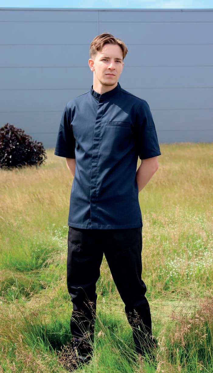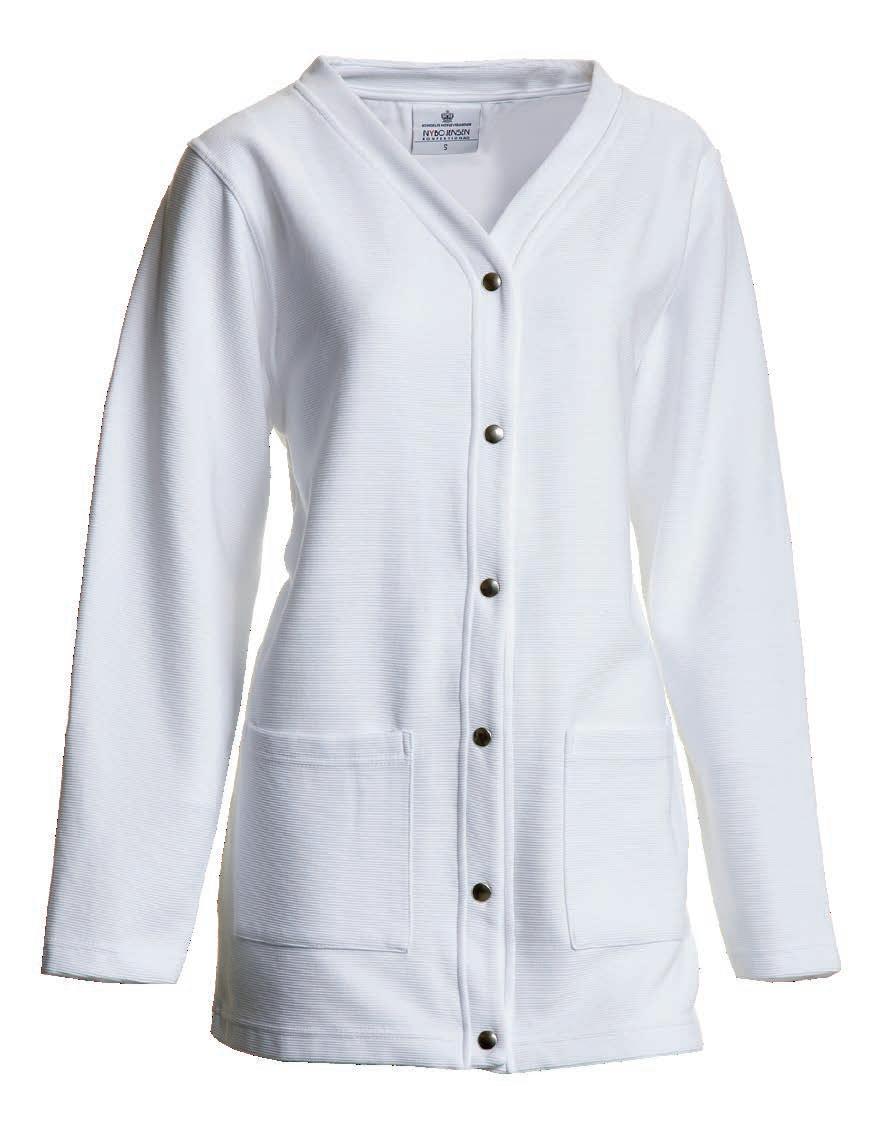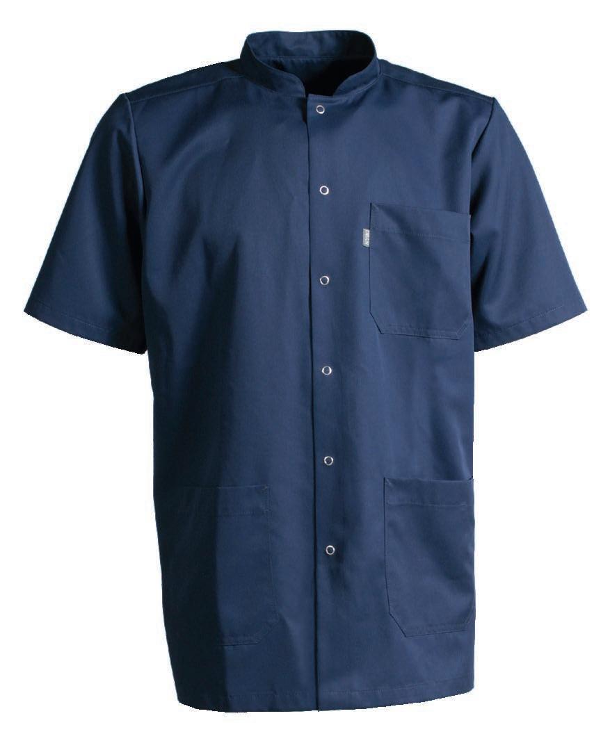 Unisex-jakke med revers. Modellen har indvendig brystlomme i venstre side samt indvendige hoftelommer med indgreb i højre side. Ærmeåbningen kan reguleres med trykknapper. Faconen er skåret lige op og ned og modellen lukkes foran med skjulte trykknapper Jakken er specielt udviklet til fødevareindustrien og opfylder kravene i DIN 10524-standarden.